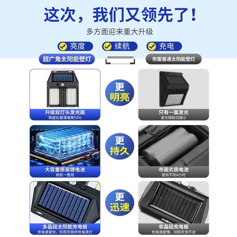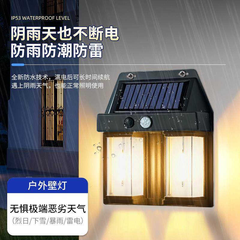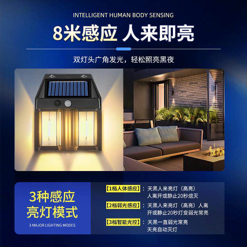 淘宝太阳能户外家用庭院灯防水壁灯别墅大门口背景墙感应灯花园露台灯