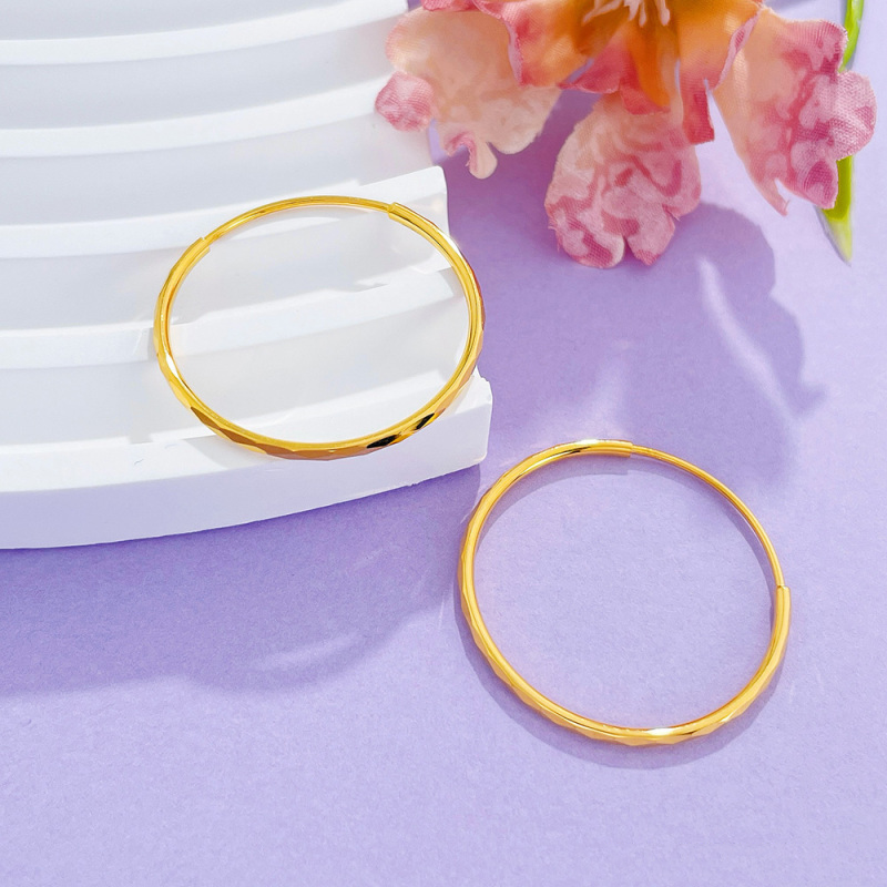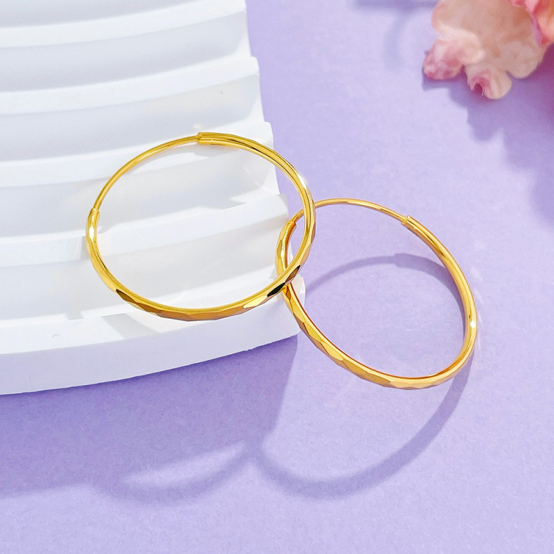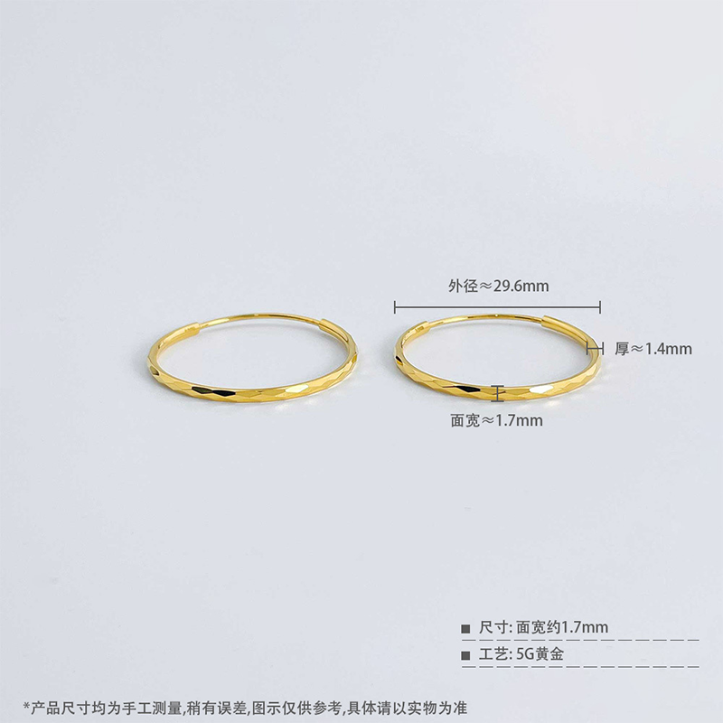 天猫5G黄金菱格耳圈女999足金新款大圈圈耳环时尚纯金圆圈耳饰送女友