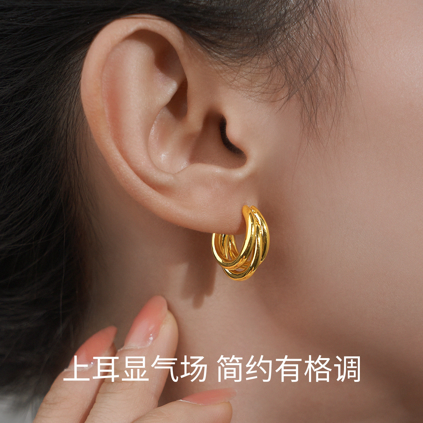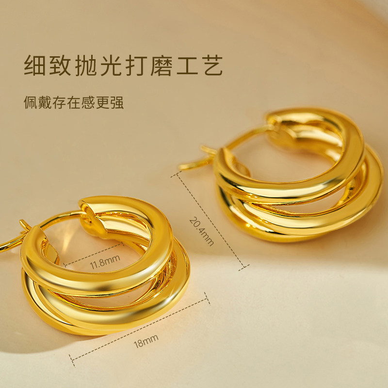 淘宝猫爪 18K金耳环光面素金耳圈三环18k金耳钉au750耳饰18k金耳扣