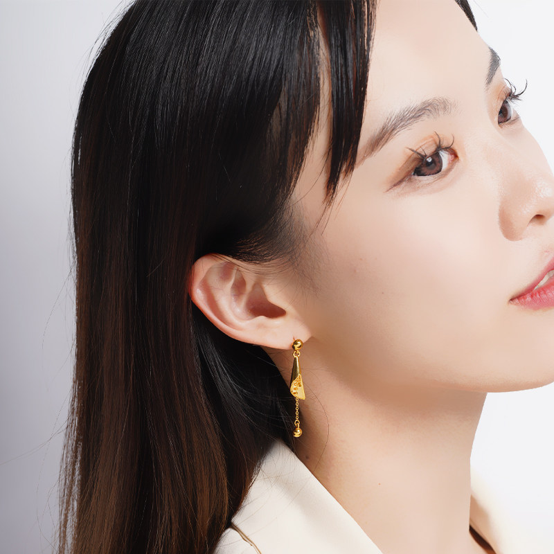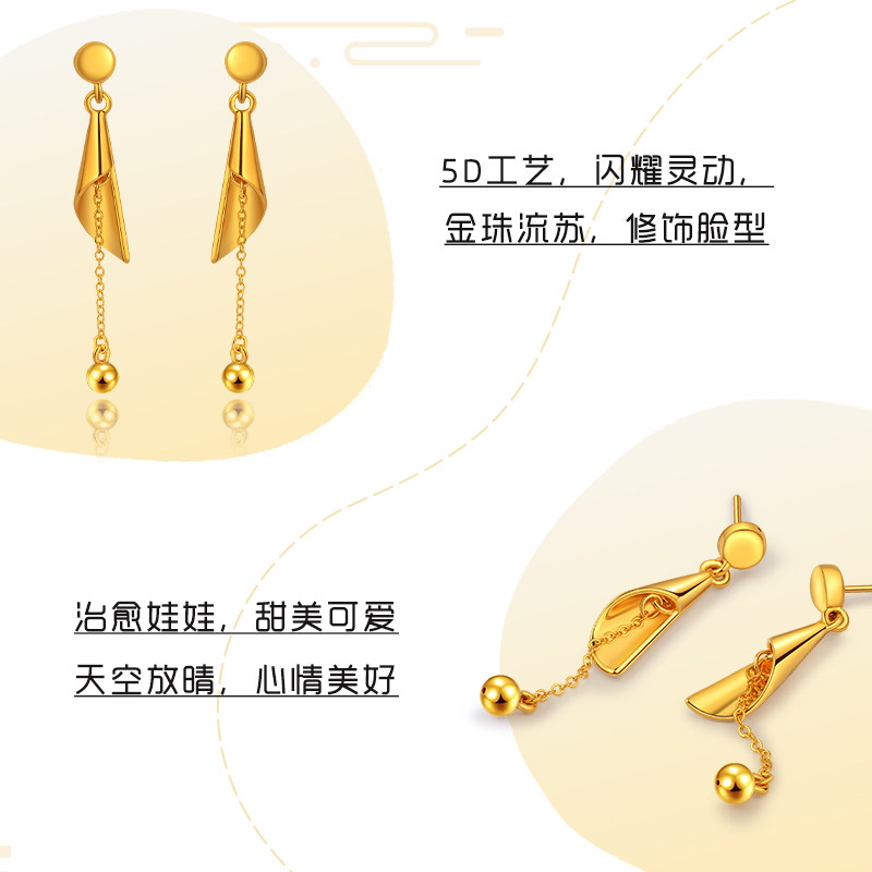 天猫老庙黄金足金海豚金时尚晴天耳环5D娃娃金珠流苏时尚耳饰送礼物