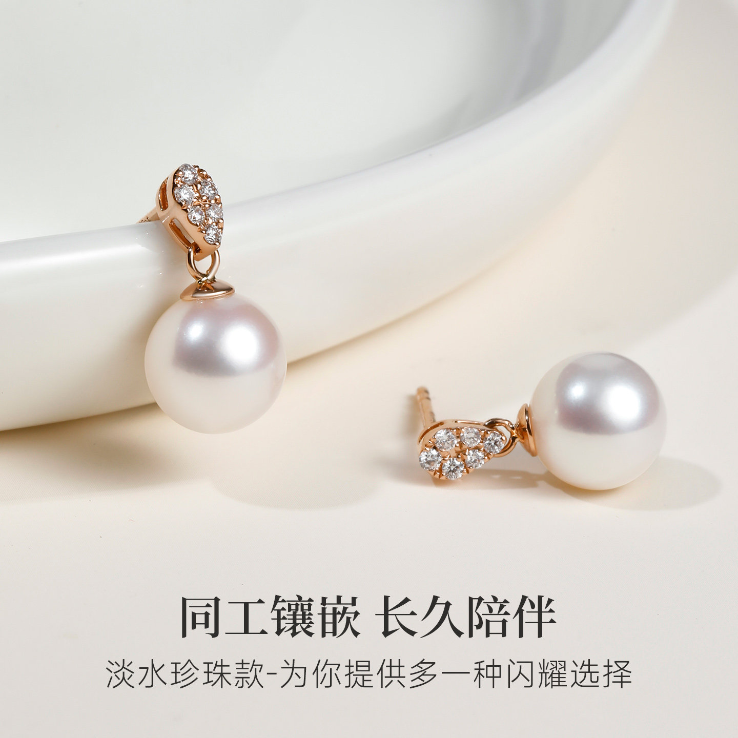 周大生缠绕珍珠耳钉女强光珍珠耳饰莫比乌斯银耳环珍珠饰品耳钉