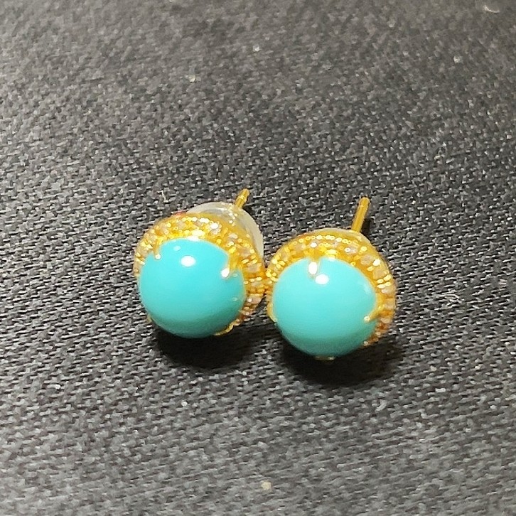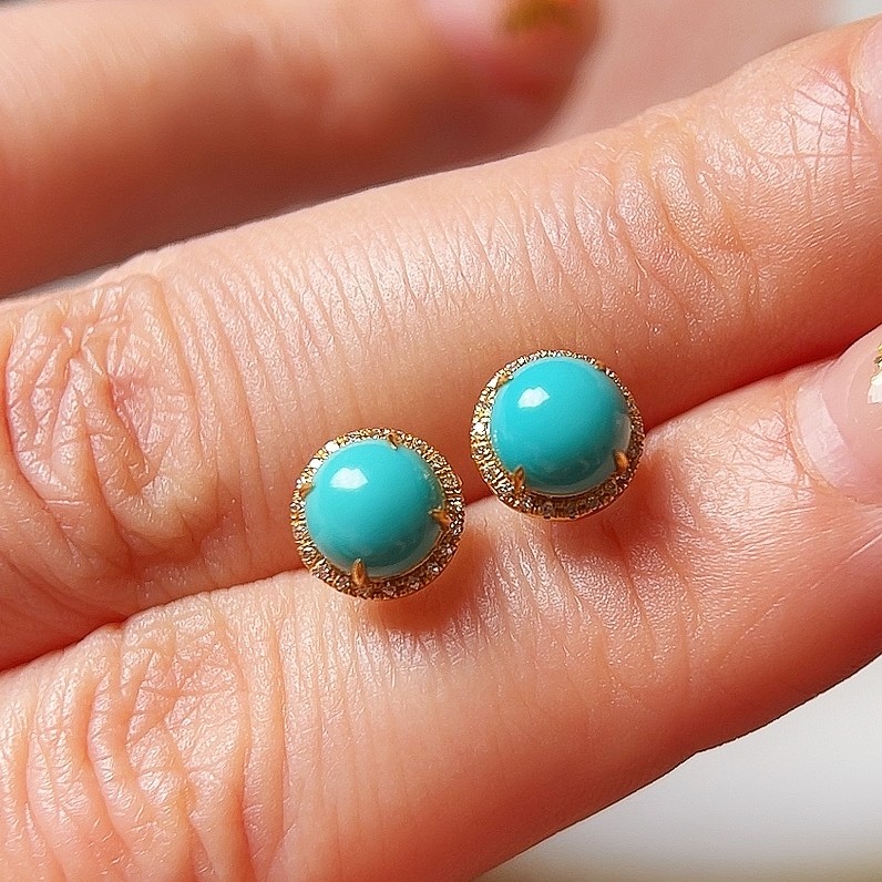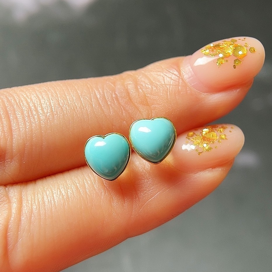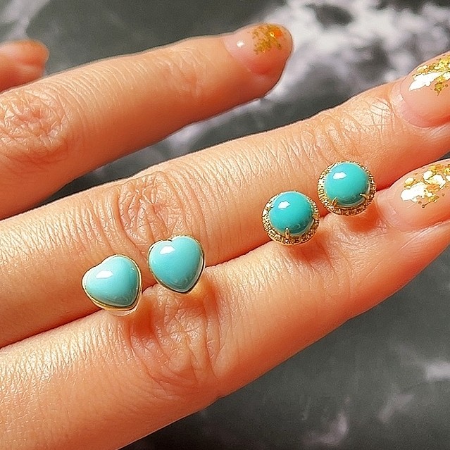 淘宝春见 天然湖北绿松石高瓷心形圆形18K金镶嵌耳钉耳饰 简约经典款