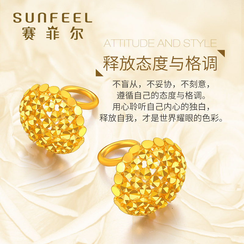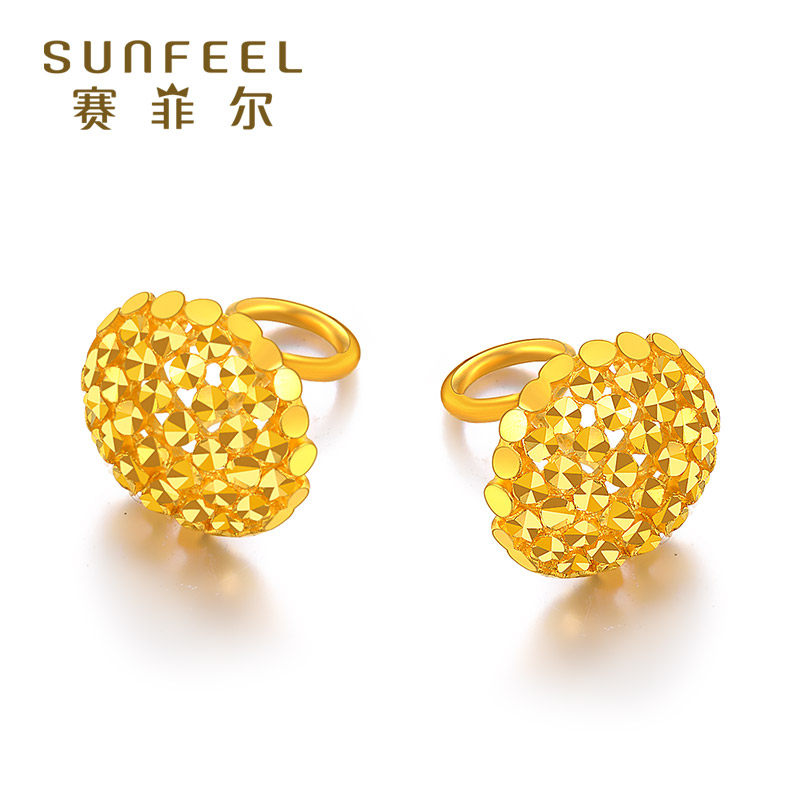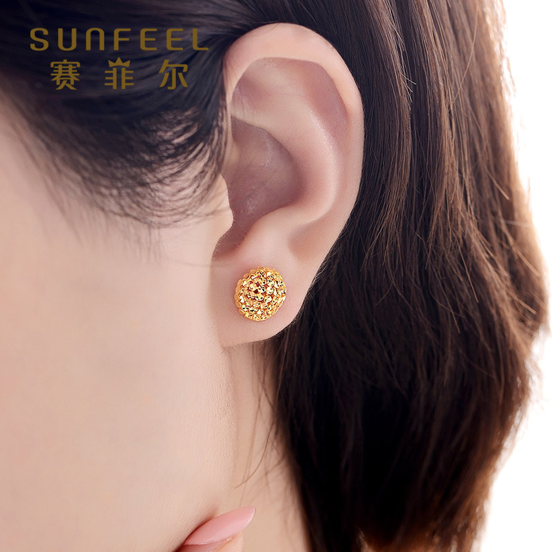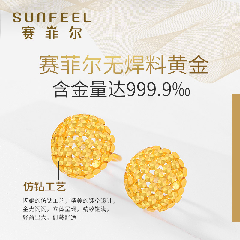 天猫赛菲尔黄金耳钉足金999.9耳环仿钻车花耳钉耳圈时尚耳饰送女友
