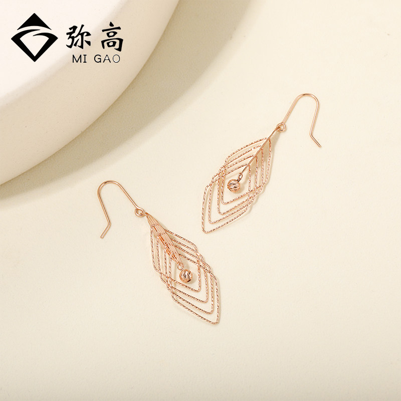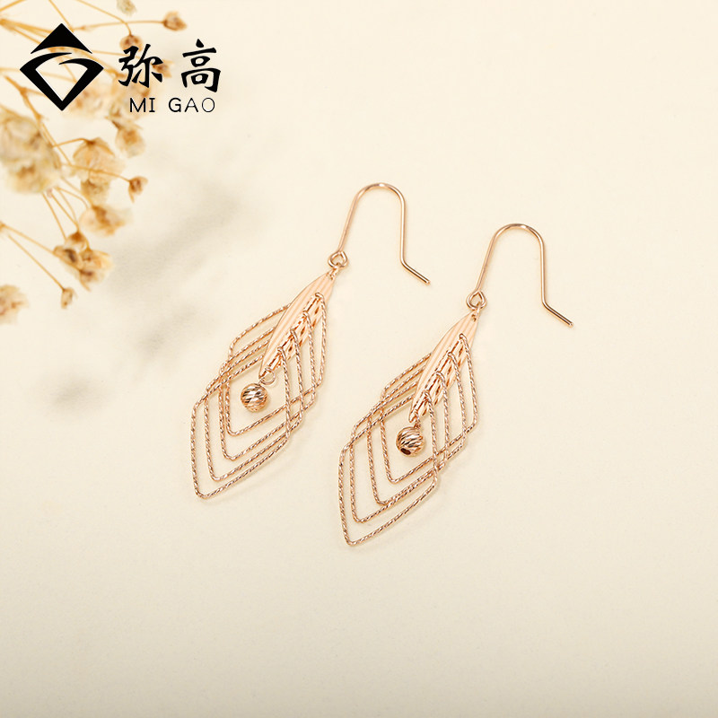 淘宝弥高18K玫瑰金黄金白金女士镂空时尚新款意大利工艺耳钩耳饰耳吊