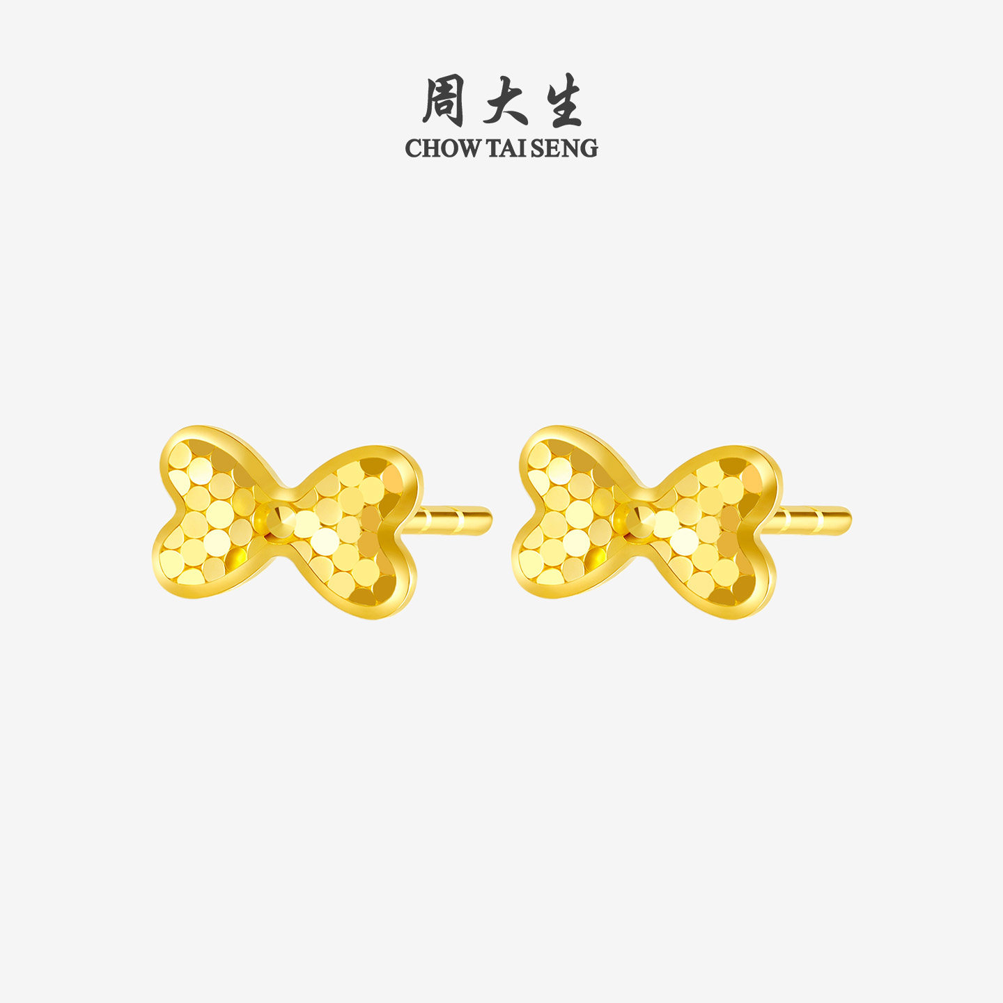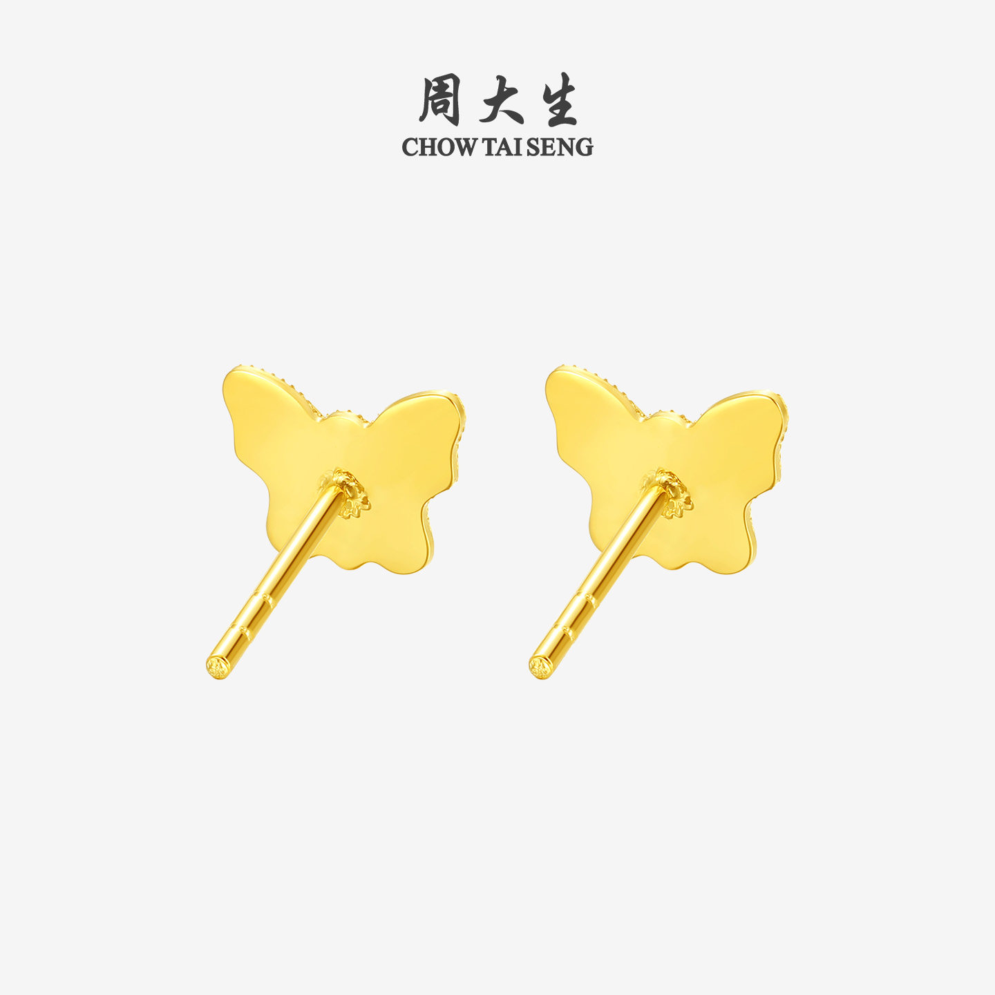 天猫周大生黄18k金耳钉爆闪双层蝴蝶时尚耳棒耳饰耳针送女生新年礼物