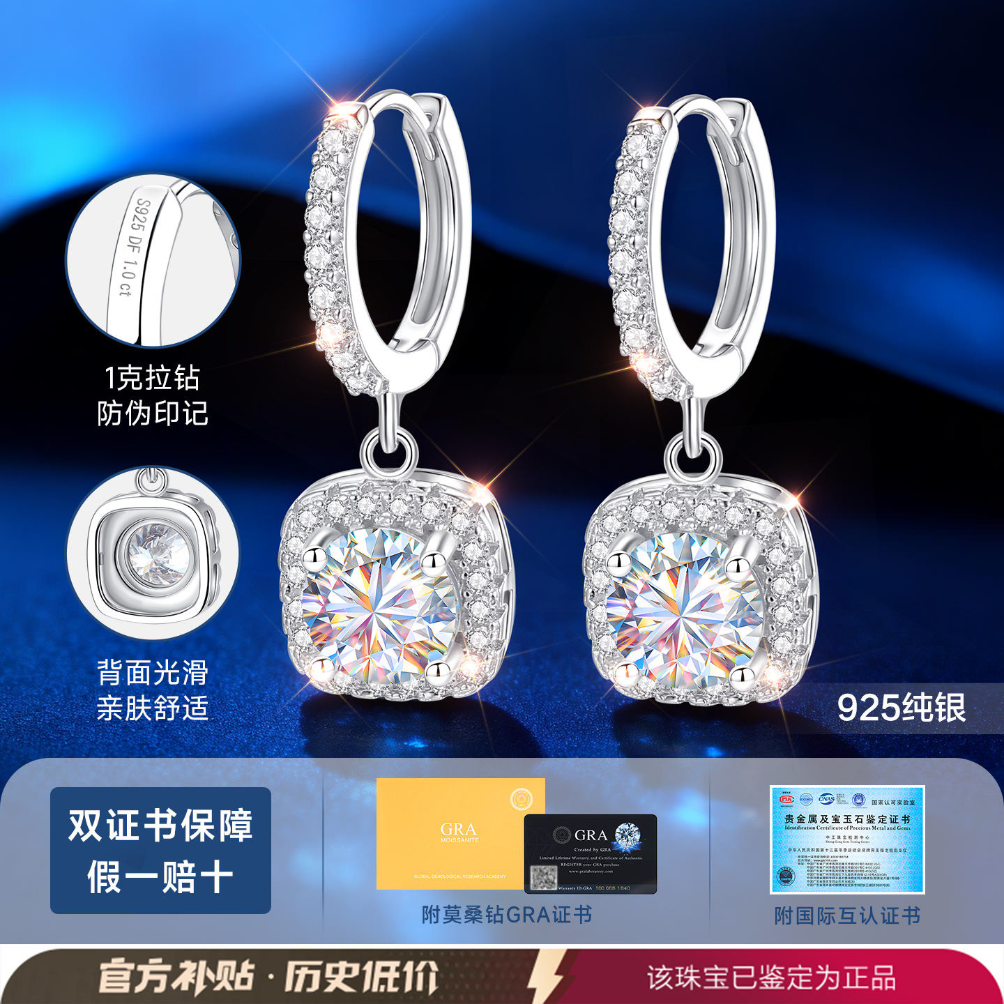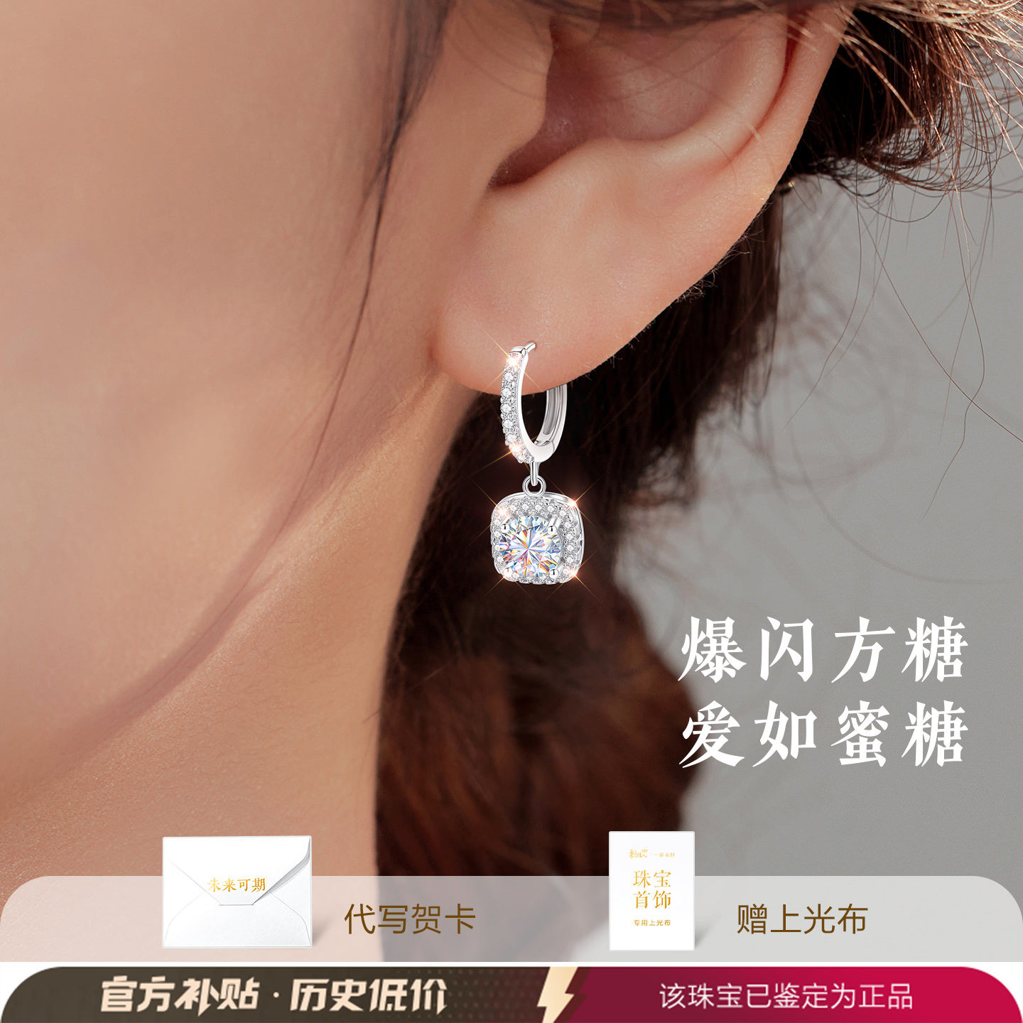 天猫纯银莫桑钻方糖银耳环女耳扣耳饰莫桑石耳钉耳坠秋冬高级感养耳洞