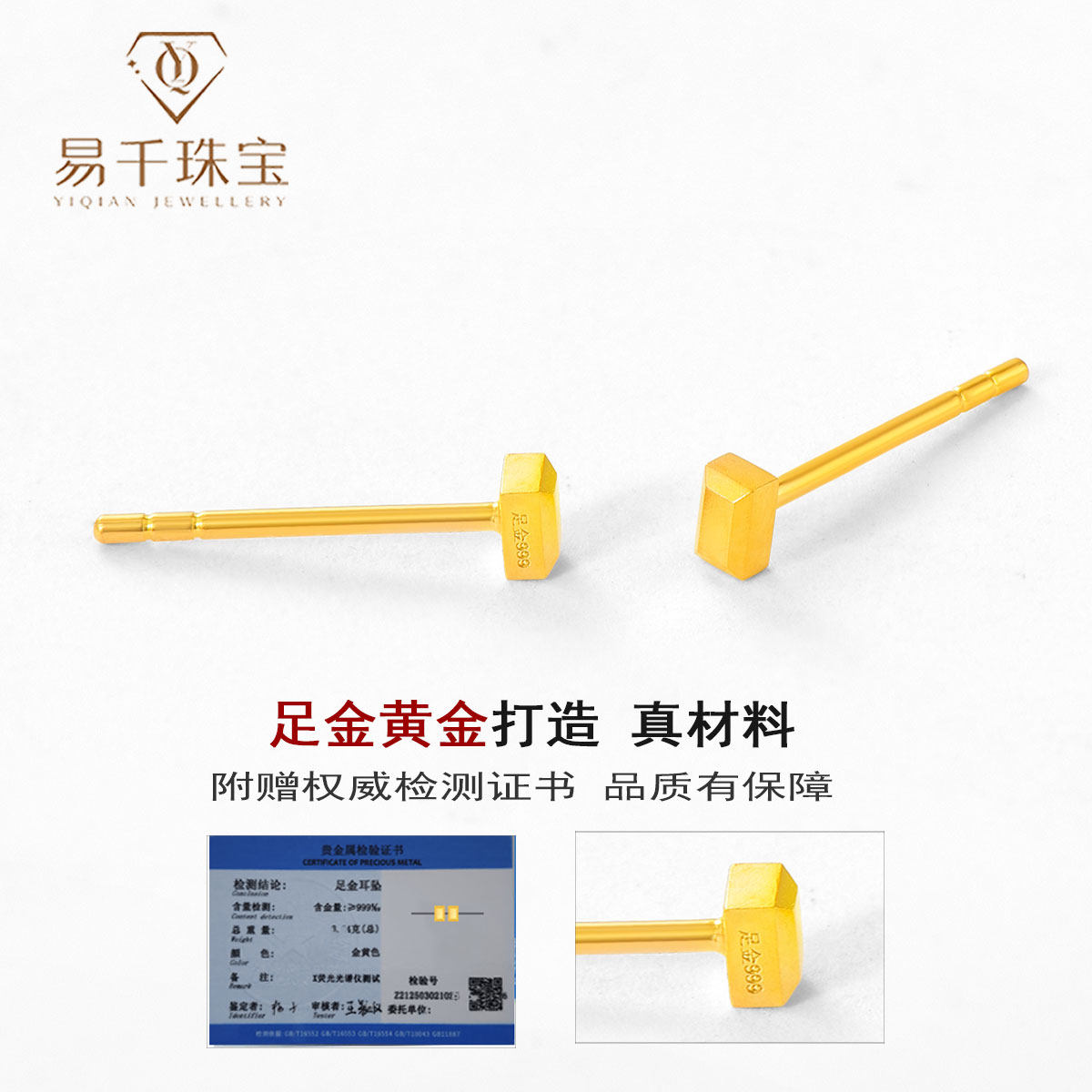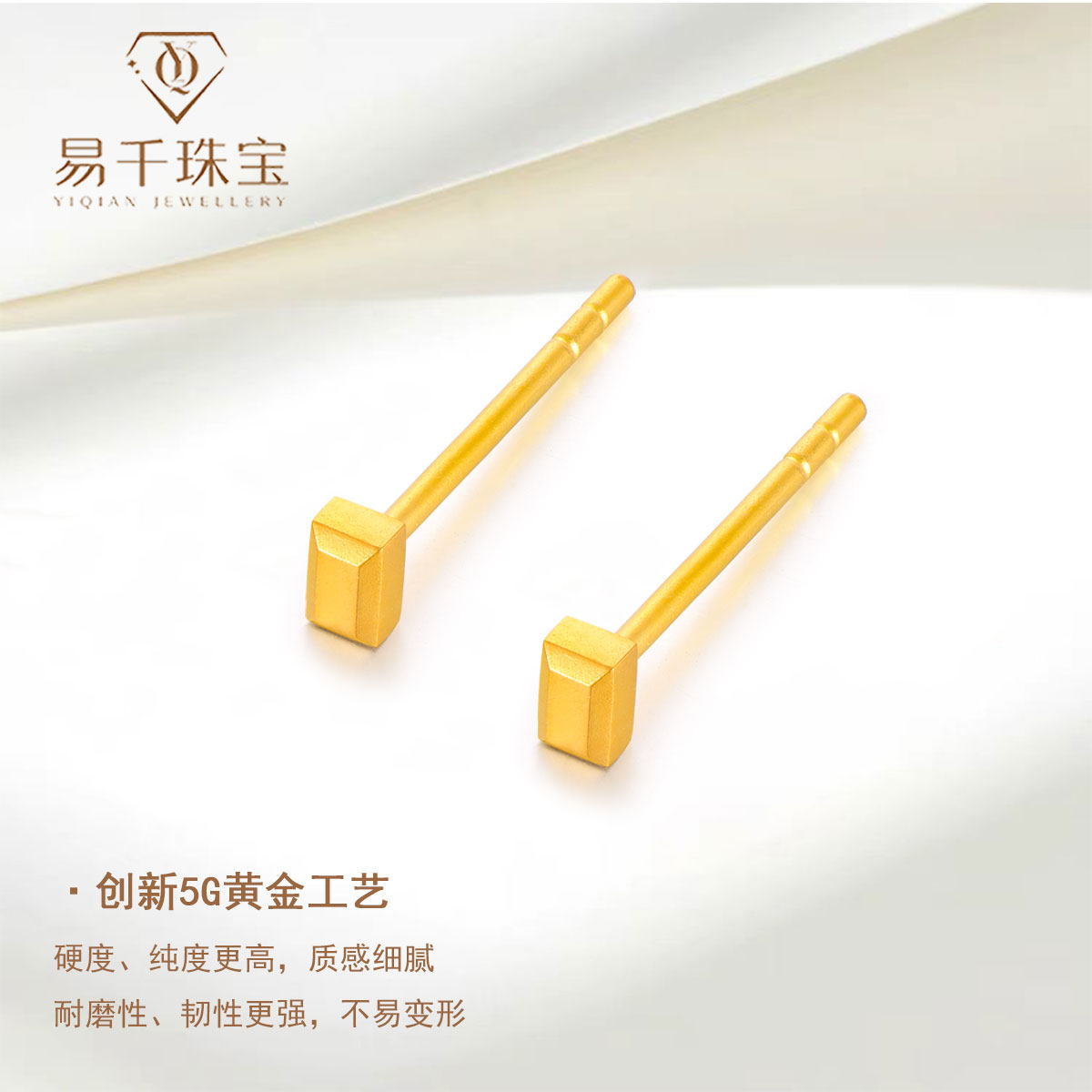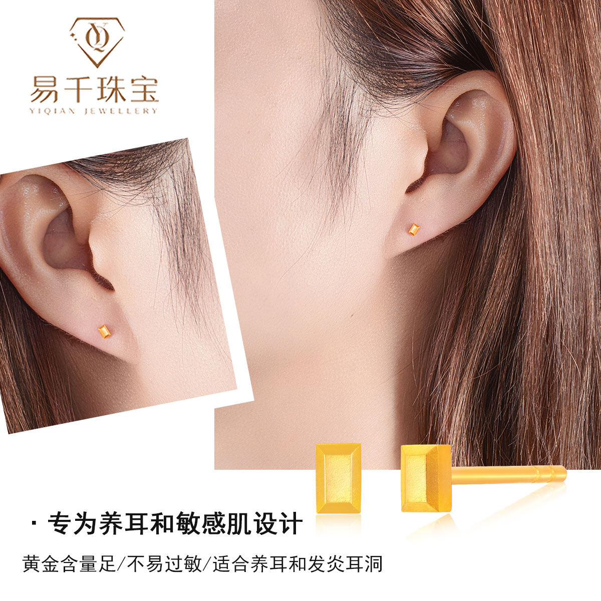淘宝黄金耳钉女足金999实心小方块耳饰养耳洞纯金耳坠几何方形防过敏
