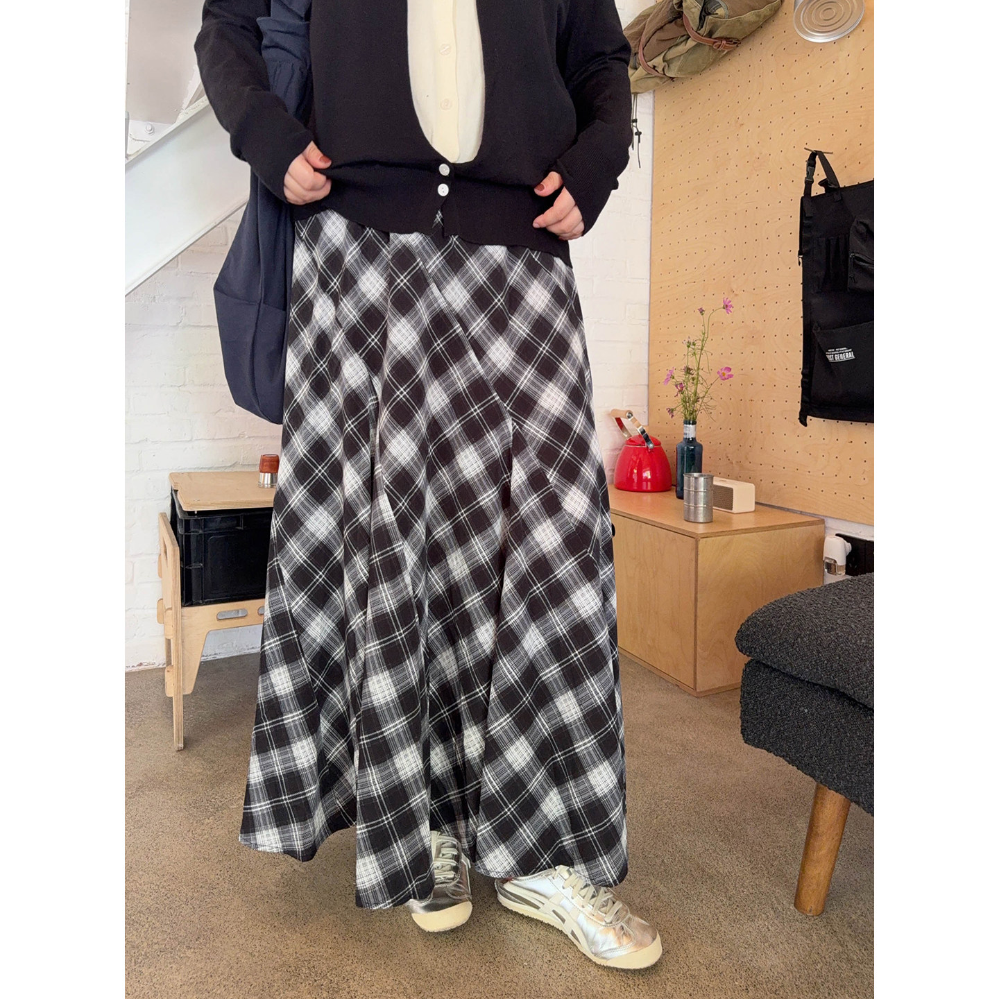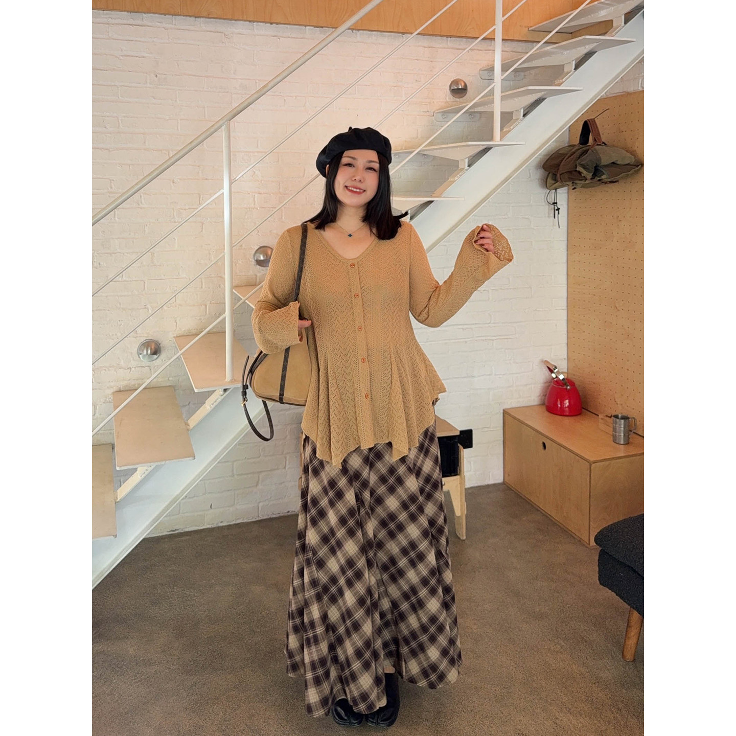 VOGANA戛纳家大码女装美拉德复古格纹高腰多片式下摆A字半身裙,专为追求优雅与舒适的现代女性设计。采用温暖浓郁的美拉德色调,融合经典复古格纹元素,展现低调奢华的秋日氛围。高腰剪裁有效修饰腰腹线条,拉长腿部比例;多片式拼接A字裙摆,层次丰富,行走间灵动飘逸,包容性强,适合多种身形。精选优质面料,触感柔软,垂坠有型,兼顾舒适与质感。无论是搭配针织衫还是小外套,都能轻松打造知性复古的时尚造型,是大码女性秋季衣橱的必备单品,彰显自信与独特魅力。