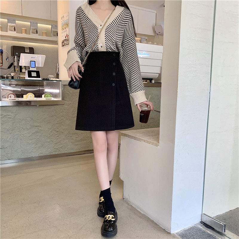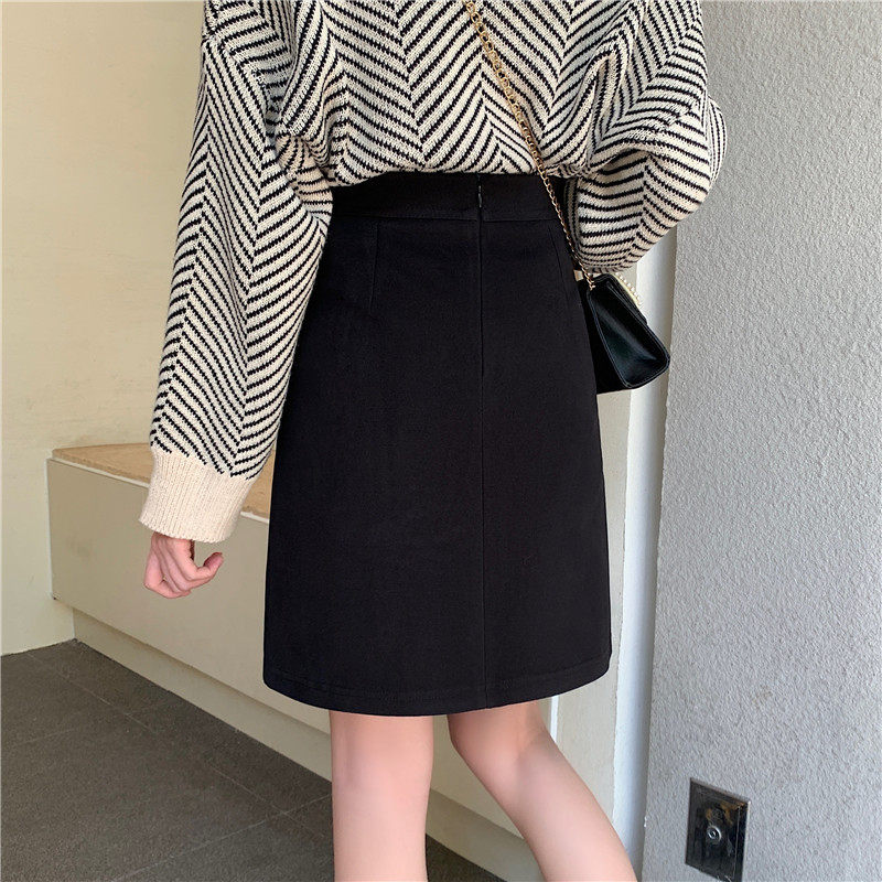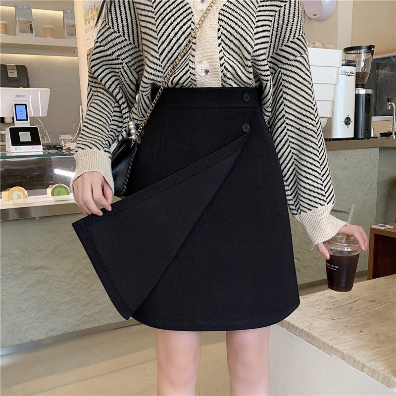 淘宝黑色毛呢半身裙秋冬大码高腰显瘦复古不规则设计感A字裙中裙遮肚