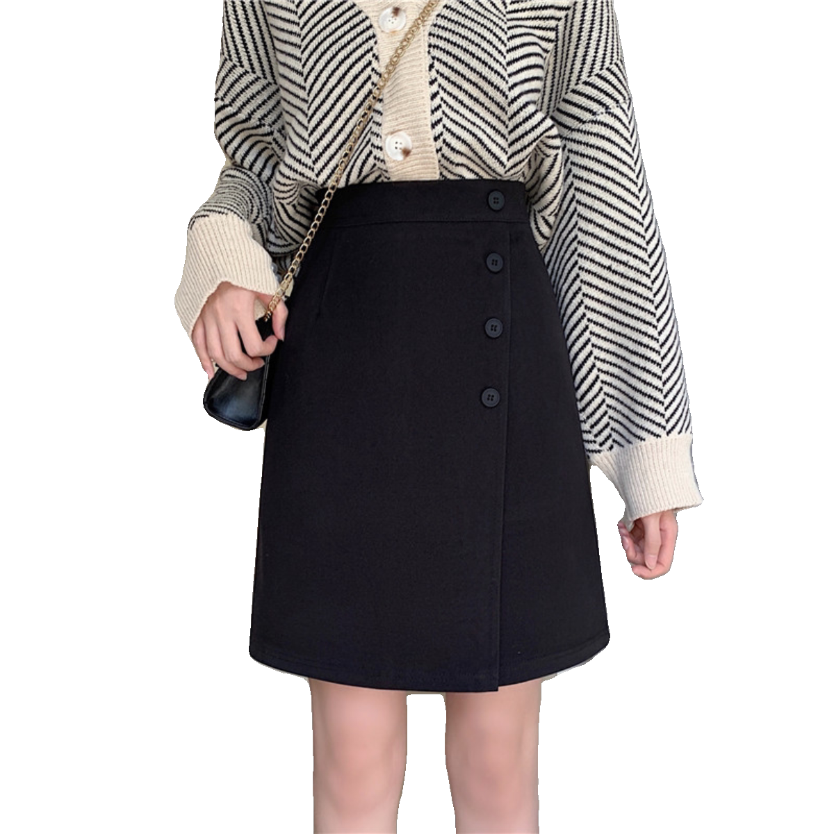 这款秋冬黑色毛呢半身裙,专为大码女性设计,采用高腰A字版型,巧妙拉长腿部线条,显瘦又提臀。精选优质毛呢面料,挺括有型,保暖舒适,适合秋冬季节穿搭。不规则裙摆设计增添复古韵味与独特设计感,打破单调,彰显个性。中裙长度恰到好处,既能修饰腿型,又优雅得体。高腰剪裁有效遮挡腹部赘肉,包容性强,穿着自在无束缚。无论是搭配毛衣、大衣还是针织衫,都能轻松打造复古时髦造型,是秋冬衣橱不可或缺的百搭单品。