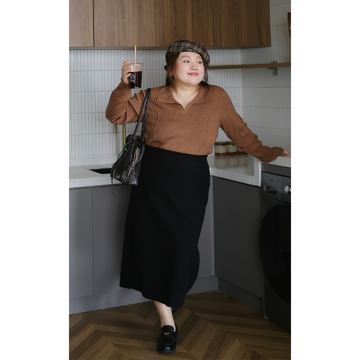 木子理想大码女装斜襟开叉设计感半身裙胖mm秋冬显瘦品质简约裙子