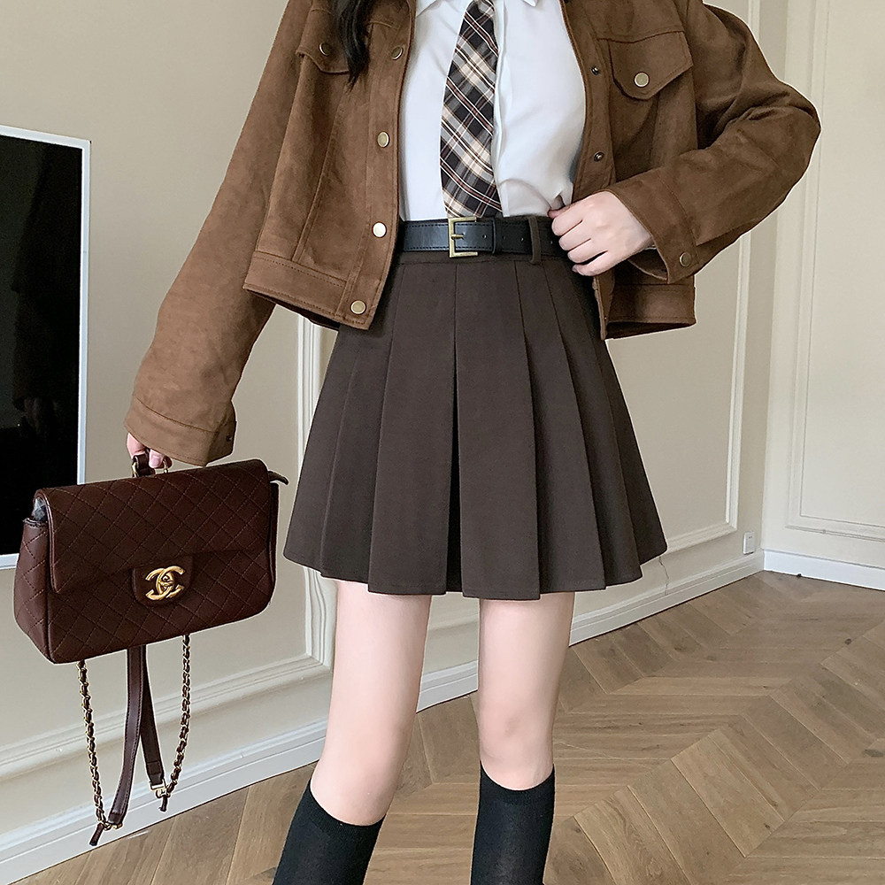 淘宝小吉家大码女装韩版毛呢百褶裙防走光短裙秋冬新款高腰a字半身裙