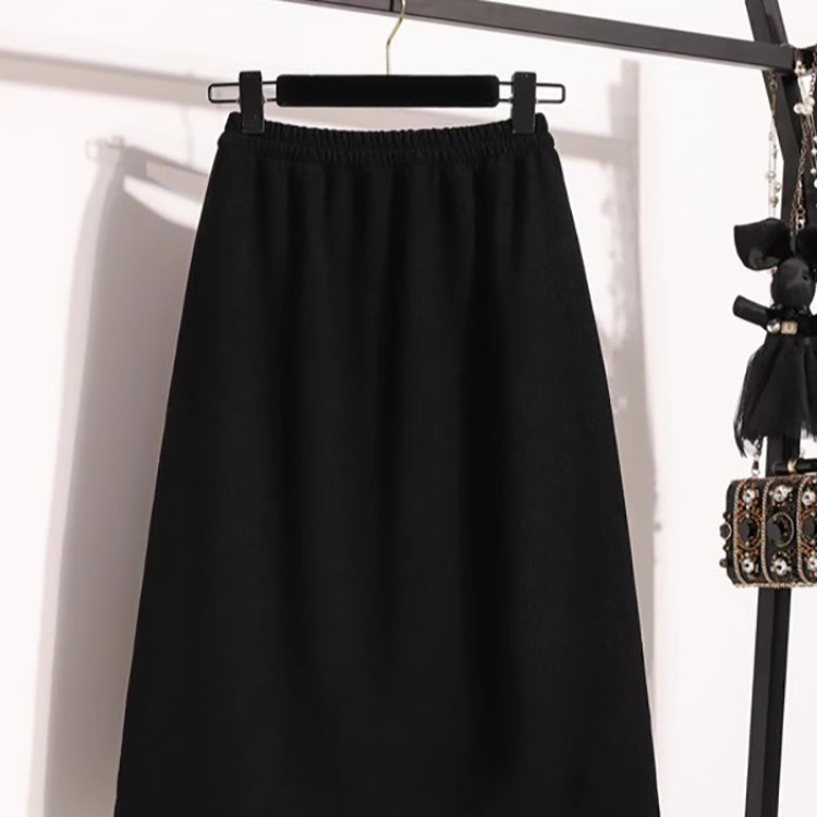 大码A字版型口袋纽扣松紧腰垂感中长款显瘦百搭羊毛针织半身裙
