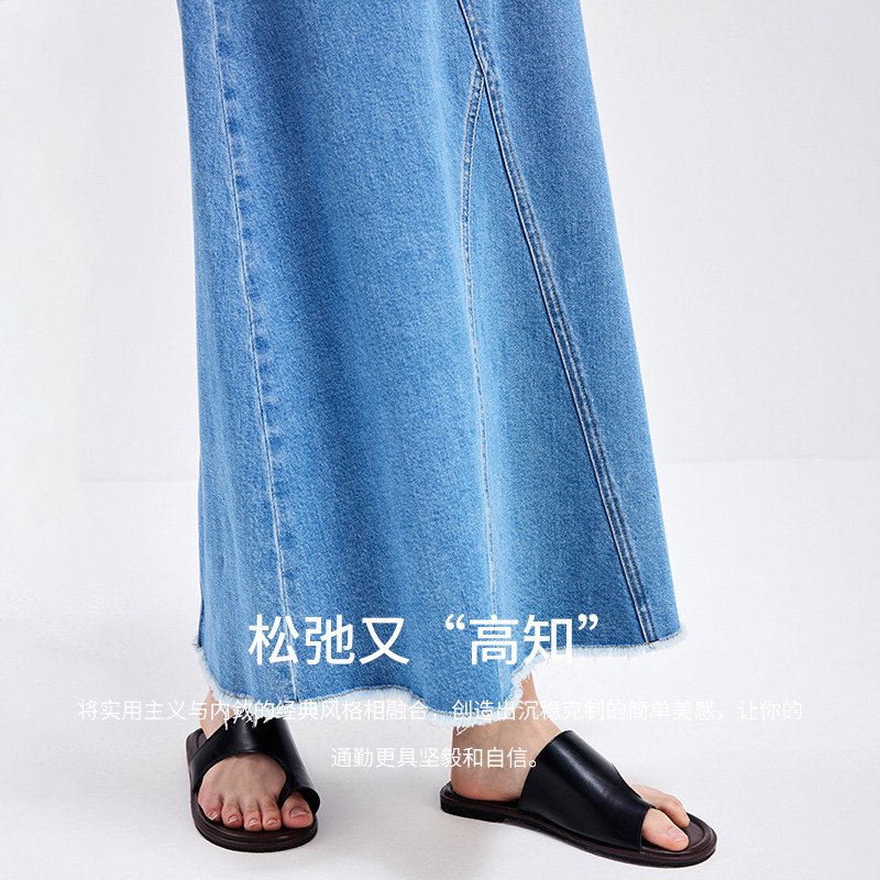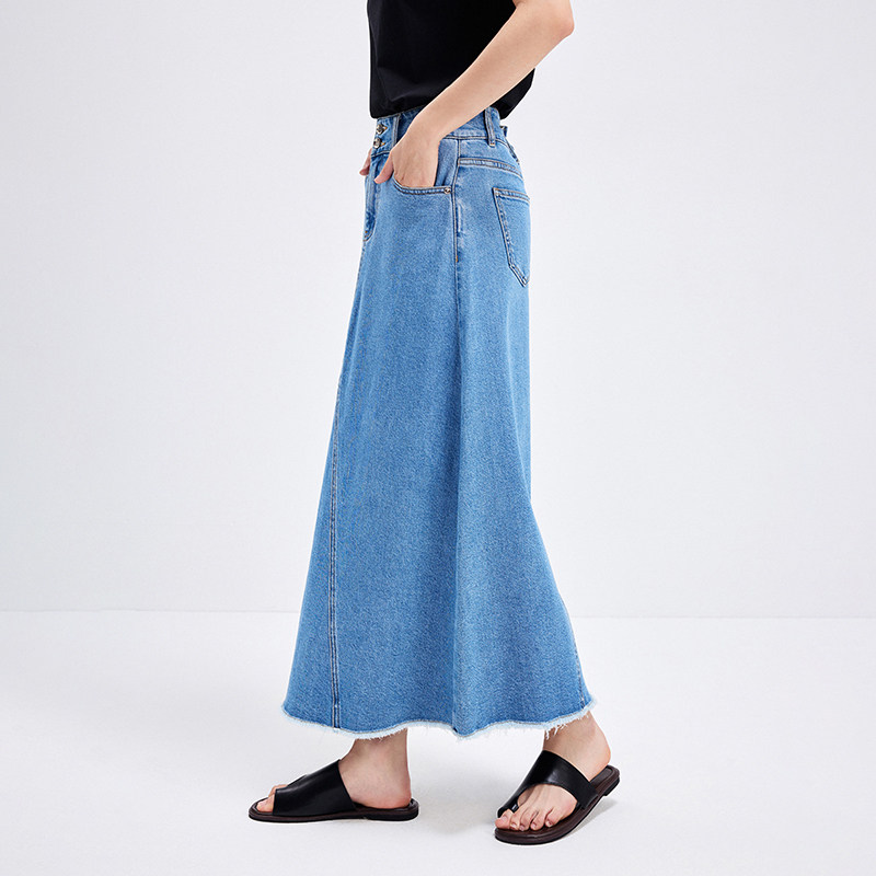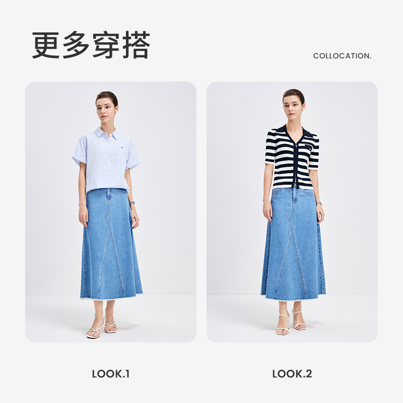 天猫Navigare意大利小帆船牛仔半身裙女春夏新款休闲A字裙中长款半裙