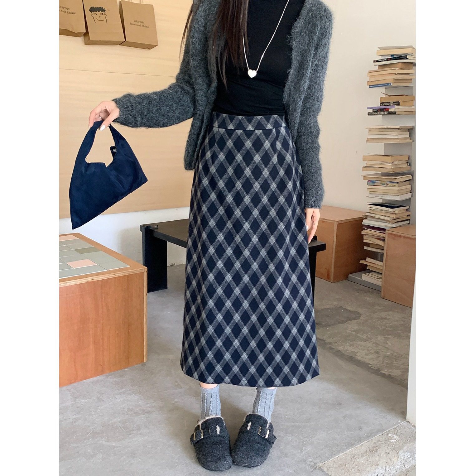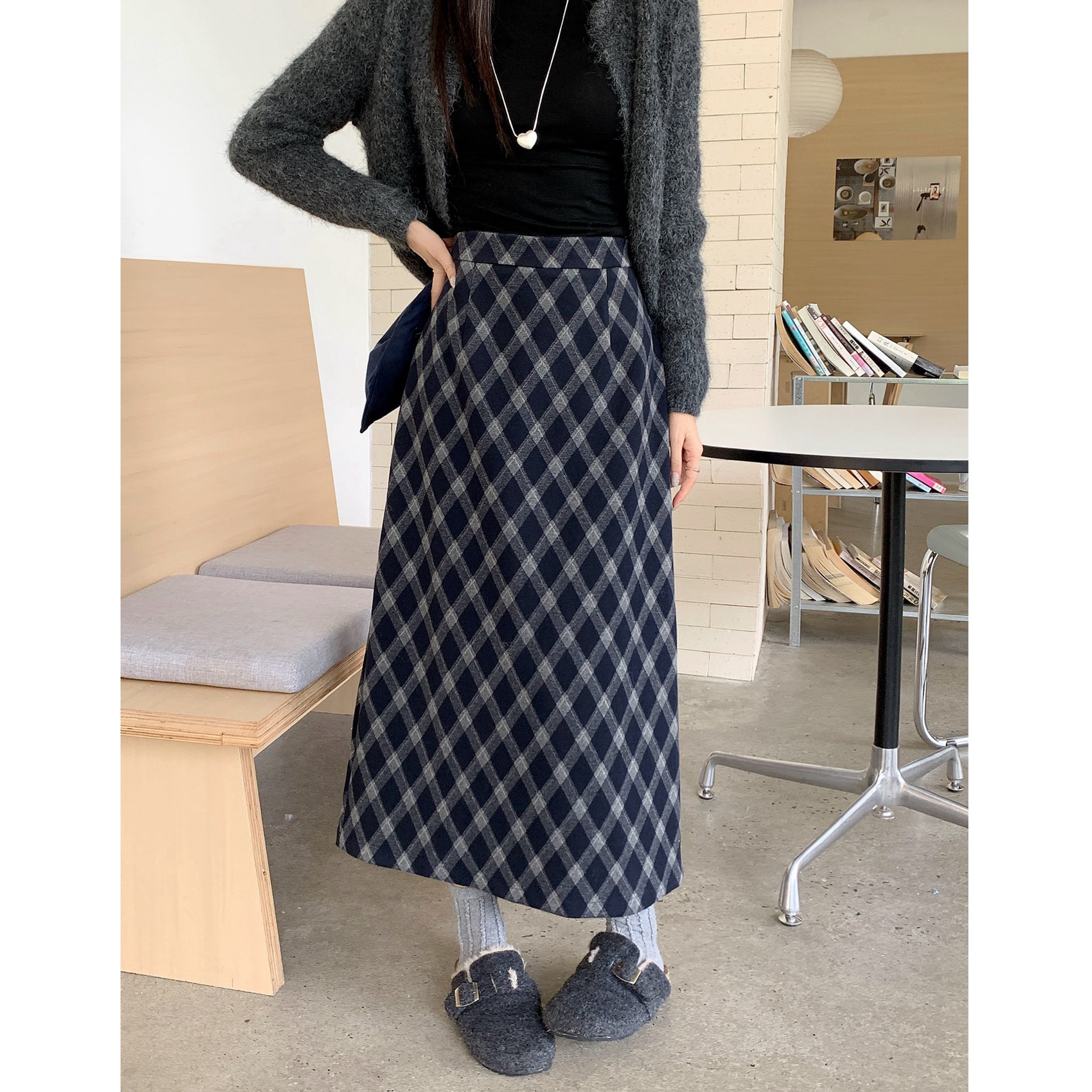淘宝小吉家大码女装秋冬新款胖mm毛呢格纹中长款半身裙显瘦小个子短裙
