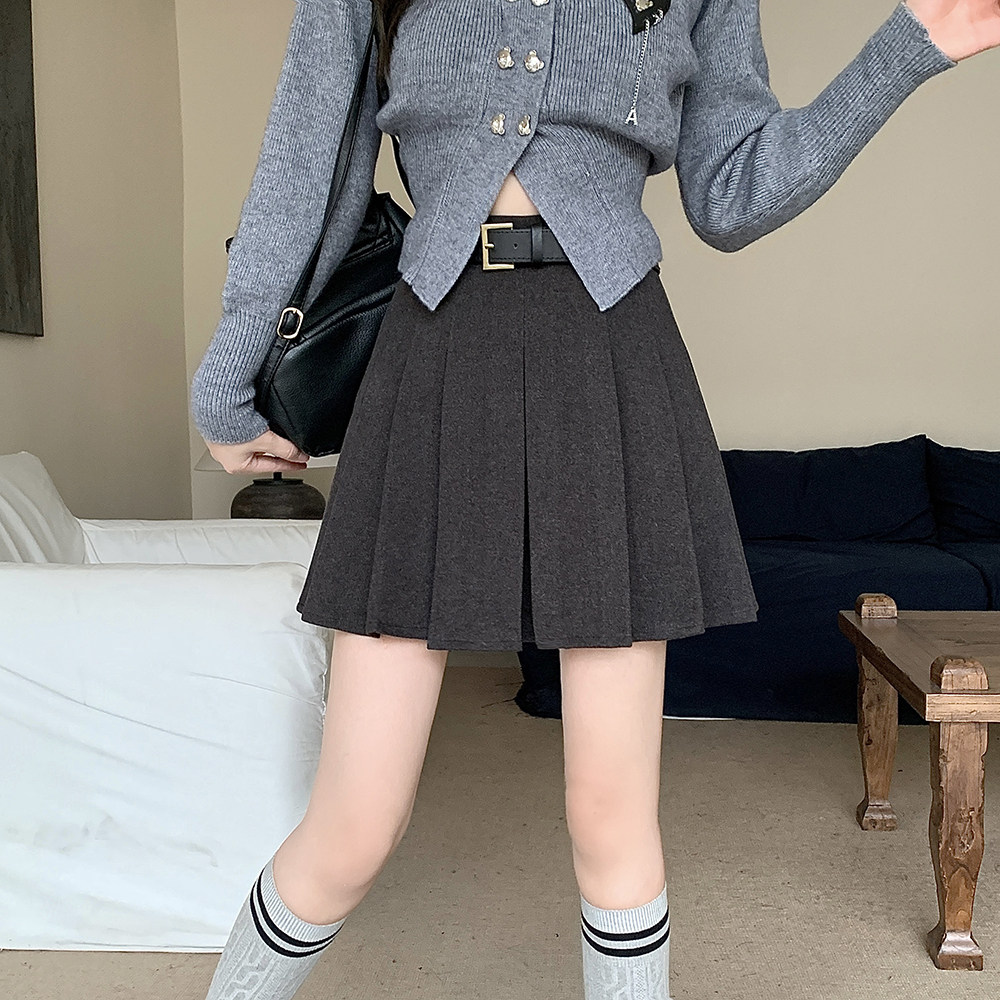 淘大码毛呢百褶裙女秋冬季复古咖色jk半身裙甜美学院减龄灰色短裙子