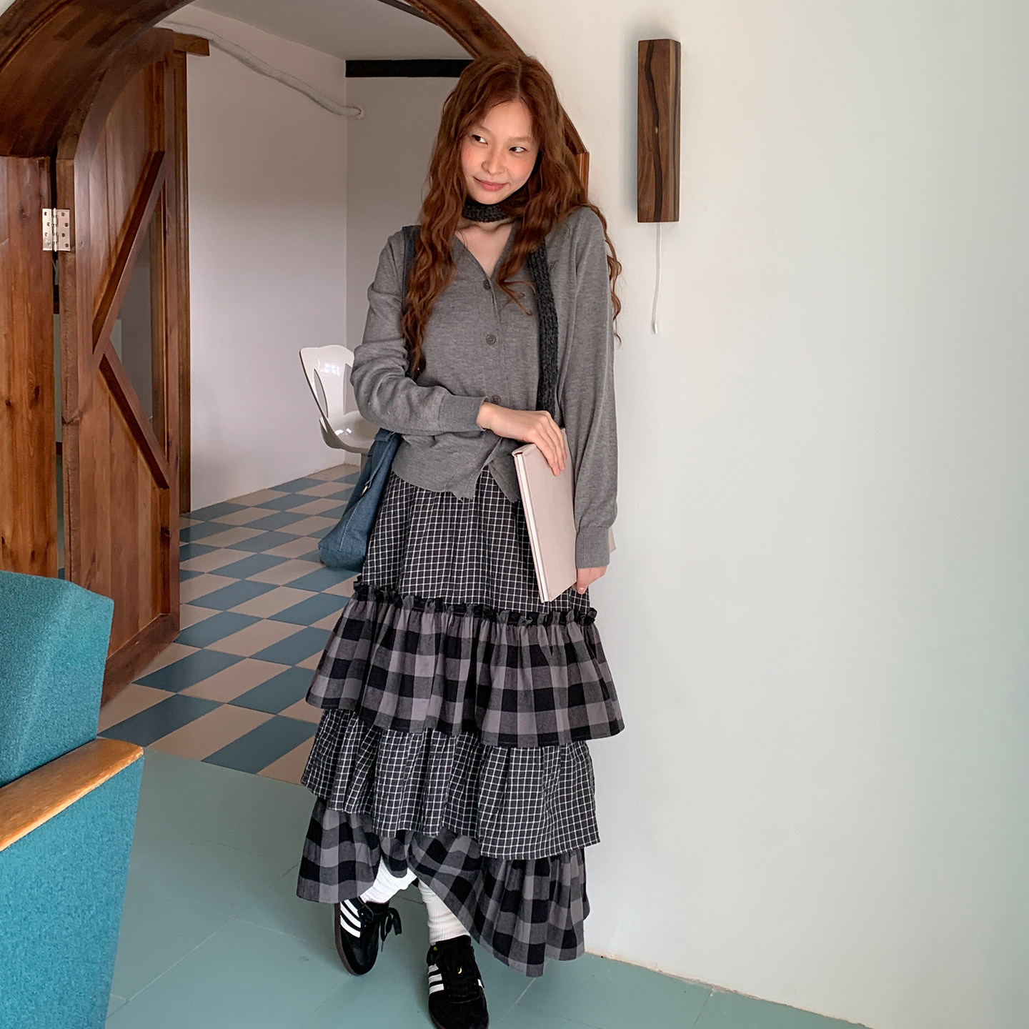 淘宝尺尺间Lsland 复古格纹多层拼接蛋糕半身裙女秋季新款设计感长裙