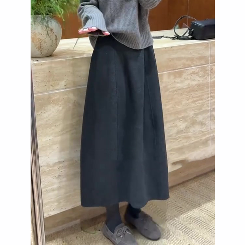 淘宝高级感深灰色毛呢花苞裙女2025冬季新款加绒加厚减龄遮胯半身裙