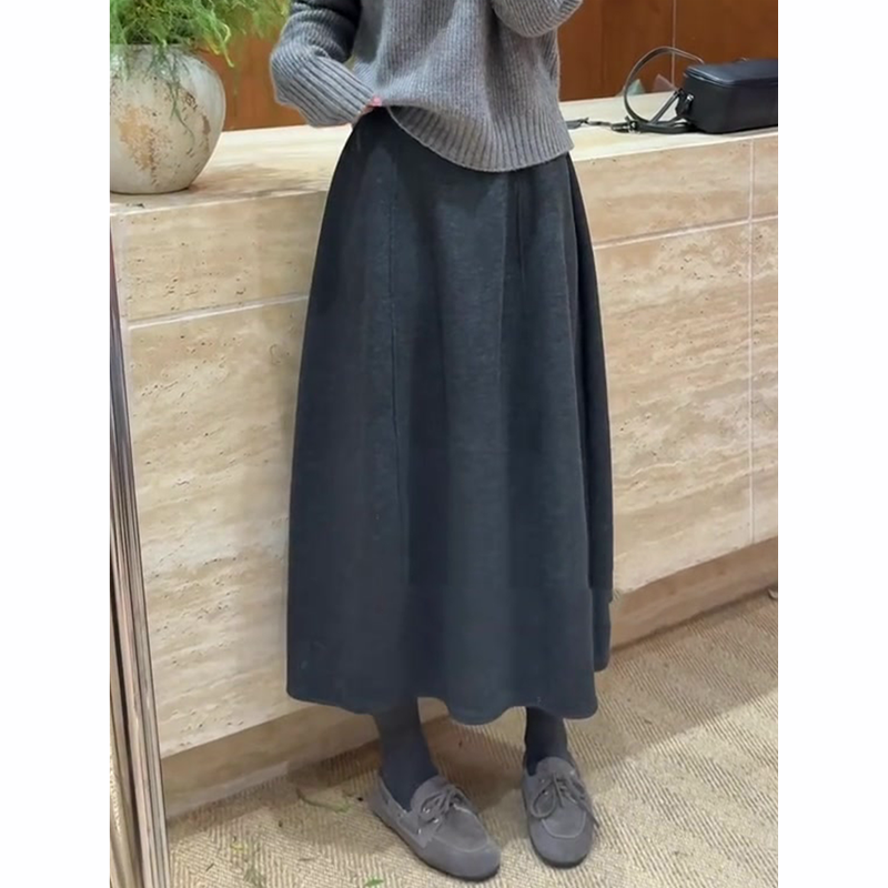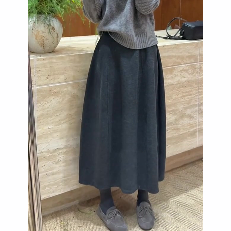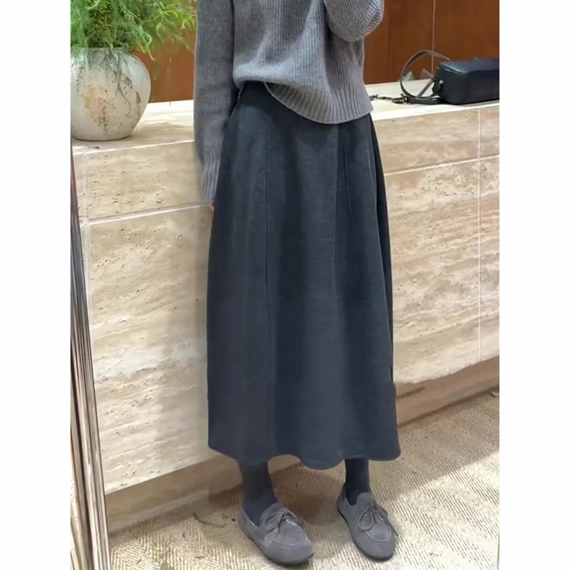 大码A字版型口袋纽扣松紧腰垂感中长款显瘦百搭羊毛针织半身裙