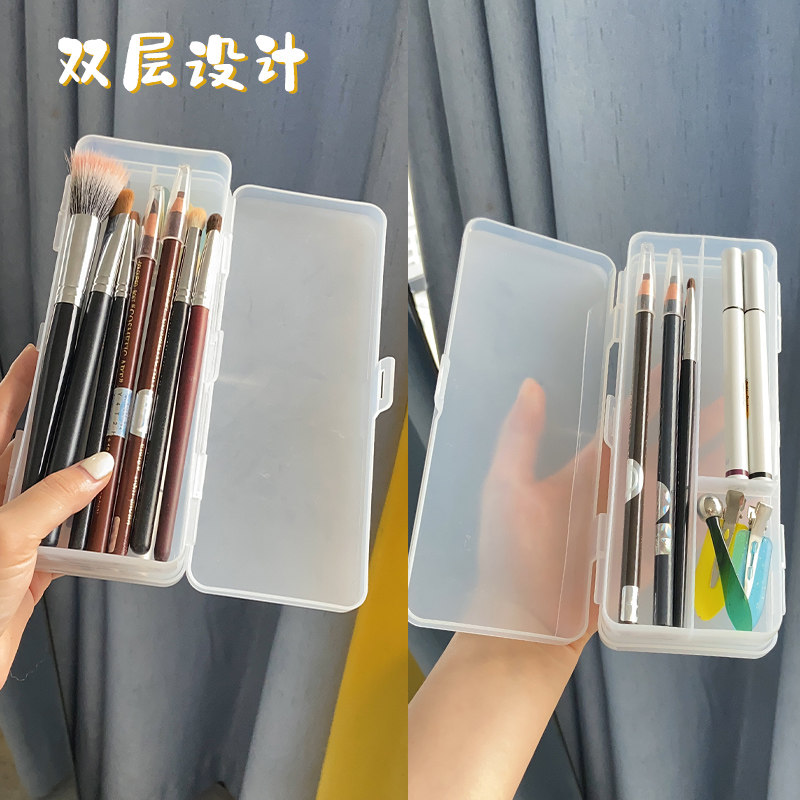 淘宝纹绣收纳盒眉笔化妆刷双层分格盒子美甲专用大容量分装戏曲工具盒