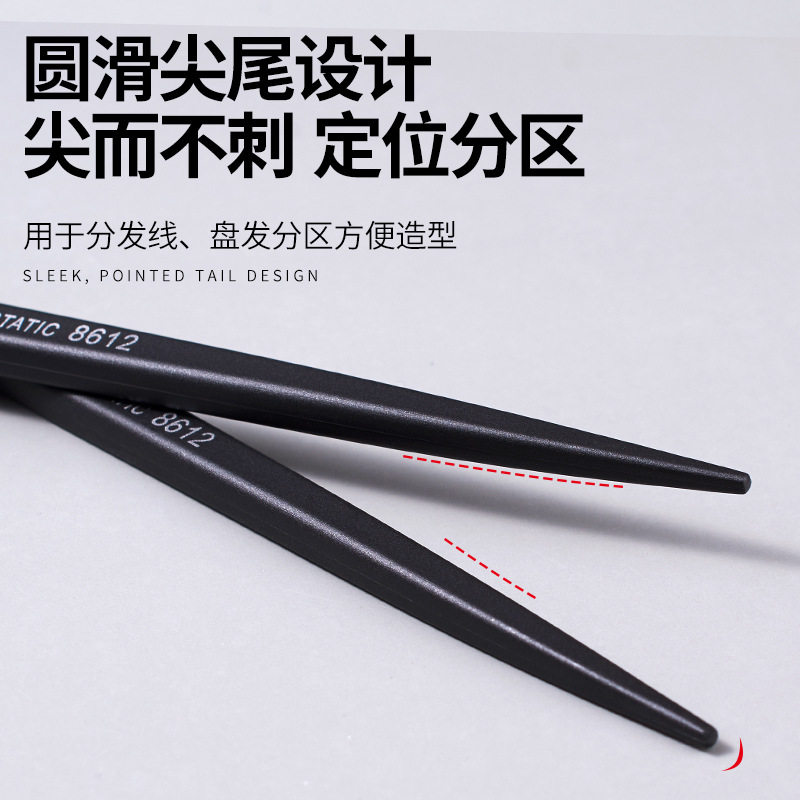 尖尾梳钢针美发工具是化妆师、发型师及影楼专业人士的得力助手,采用优质不锈钢材质,梳齿细密均匀,兼具梳理、分区与造型功能。其尖尾设计便于精准分线,适用于盘发、编发、剪发及日常造型,操作灵活高效。钢针结构坚固耐用,防静电处理有效减少头发毛躁,提升造型顺滑度。搭配彩妆使用时,也能辅助整理刘海与鬓角细节,确保整体妆容精致。无论是日常美发沙龙、新娘跟妆,还是影楼写真拍摄,这款多功能尖尾梳都能满足专业需求,是女性美发造型中不可或缺的实用工具,兼具美观与功能性,助力打造完美发型。
