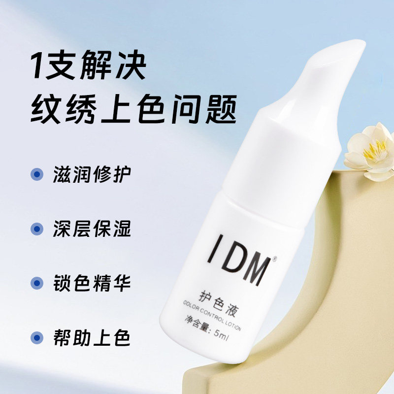 IDM纹绣固色上色剂是一款专为眉、眼、唇纹绣设计的辅助修复护色液,适用于雾眉、飘眉及唇部纹绣后护理。其核心成分为天然植物精华与温和固色因子,能有效促进创面愈合,减少结痂,防止色素流失,显著提升上色稳定性与持久度。产品质地清爽易吸收,不刺激皮肤,使用后色泽自然饱满,避免发灰、变红等常见问题。适用于专业纹绣师操作后的日常护理,帮助维持纹绣效果更持久、更亮丽。IDM固色液兼具修复与护色双重功效,是纹绣后护理的理想选择,助力打造精致持久的半永久妆容。