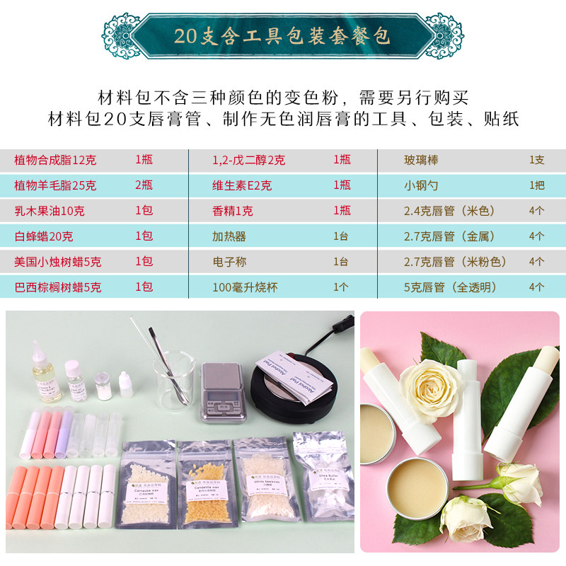 淘宝自制唇膏材料包diy变色润唇膏口红手工制作变色粉工具全套装一套