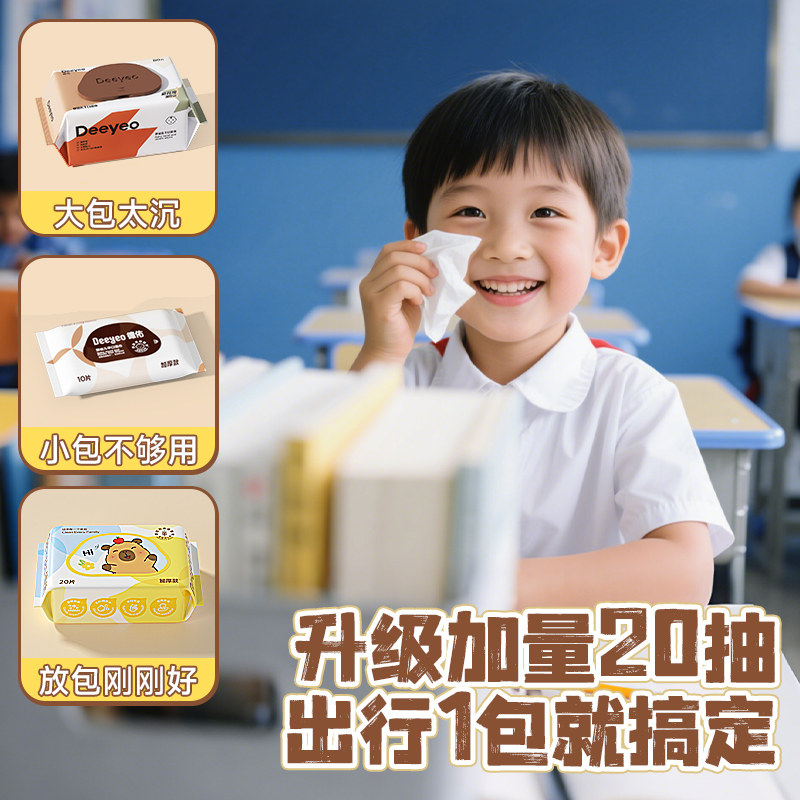 天猫德佑婴儿湿巾便携小包卡皮巴拉小学生湿纸巾手口屁专用幼儿园20抽
