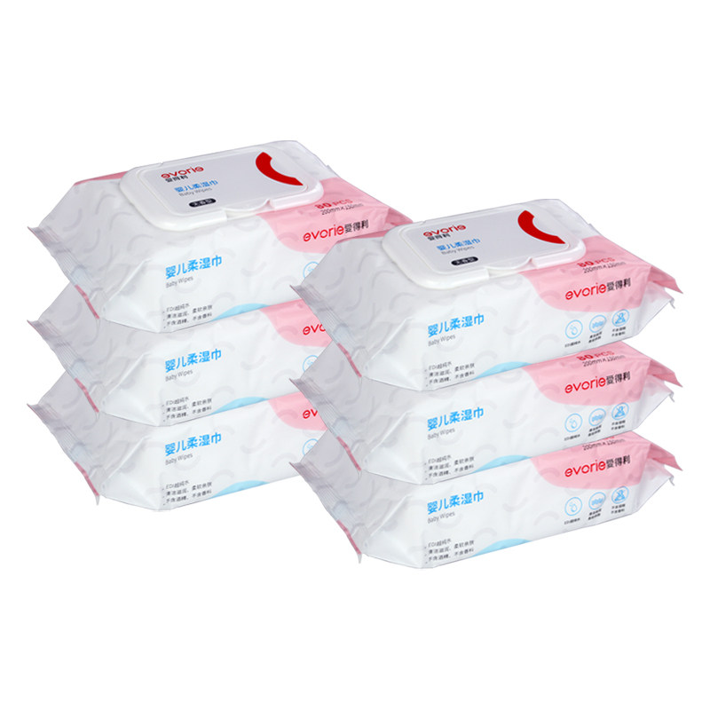 天猫爱得利湿巾带盖柔湿巾纸婴儿新生儿宝宝湿纸巾无香型6包80抽片装