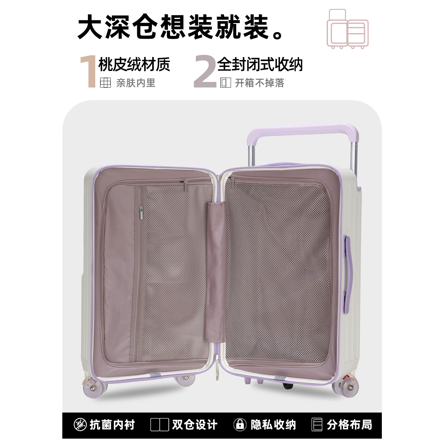 御行新款双层防爆拉链桃皮绒PC双轴承静音轮24旅行箱拉杆箱万向轮