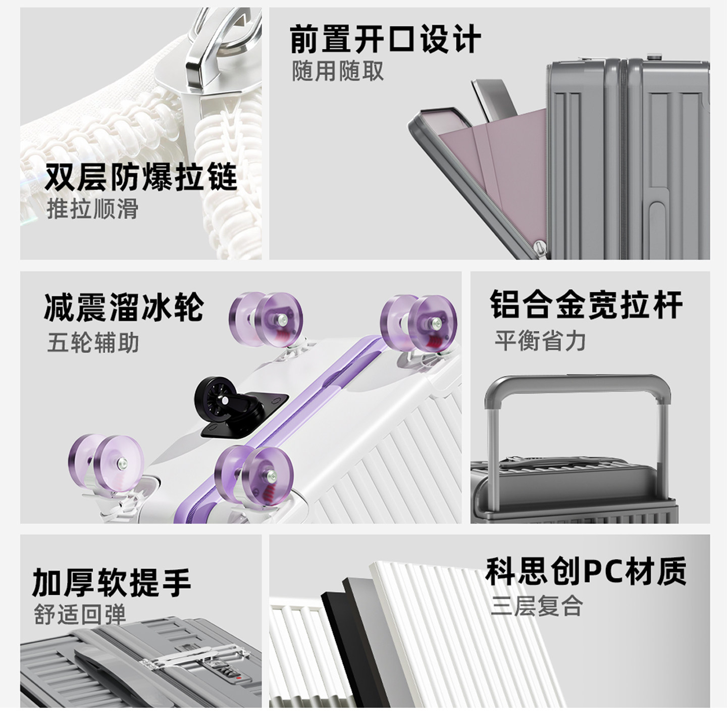 天猫静音溜冰轮大容量行李箱2025新款宽拉杆前置开口登机箱旅行密码箱