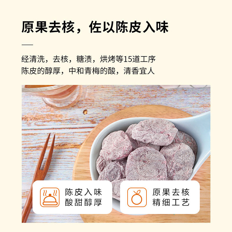 天猫来伊份无核陈皮梅80g日式梅肉梅饼梅子果脯酸甜果干蜜饯休闲零食
