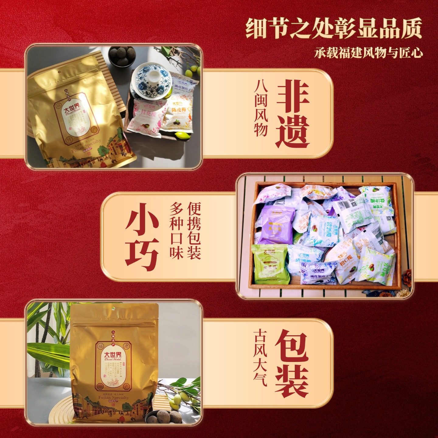 福建特产大世界橄榄蜜饯果干陈皮混合伴手礼,精选福建本地优质橄榄、话梅、陈皮及天然果干,采用传统工艺与现代技术结合精心制作,口感酸甜适中,清香怡人。产品无人工色素、无防腐剂,健康天然,特别适合孕妇及注重养生的消费者作为日常休闲零食。500克精装礼盒设计典雅大方,既适合自用,也是走亲访友的理想伴手礼。每一颗都饱含福建风土人情,传递地道美味与健康关怀。无论是孕期解馋、缓解孕吐,还是日常开胃消食,都是安心之选。福建特产大世界,以匠心品质,守护您与家人的味蕾与健康。