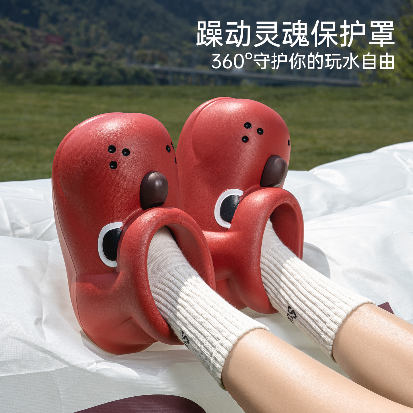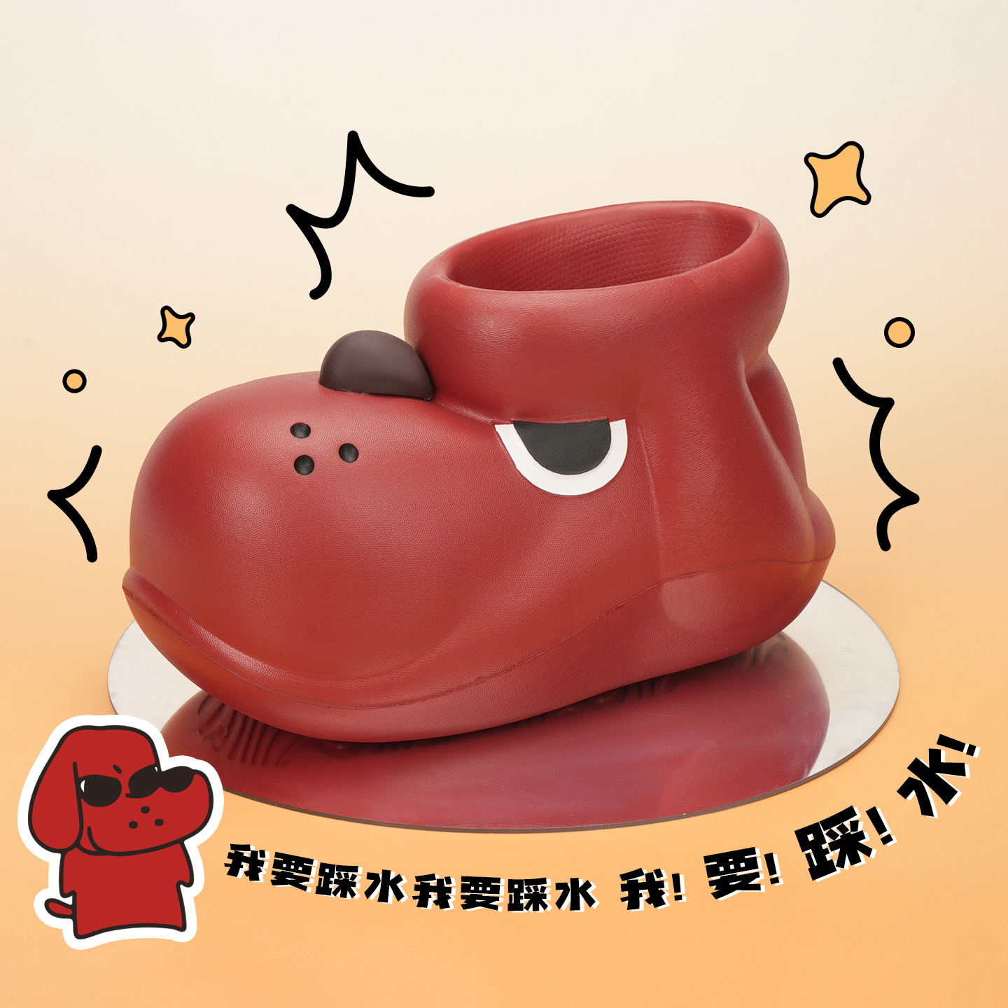 天猫【明星同款】chikoku小狗阿泽雨靴女可爱户外防滑厚底溯溪短靴