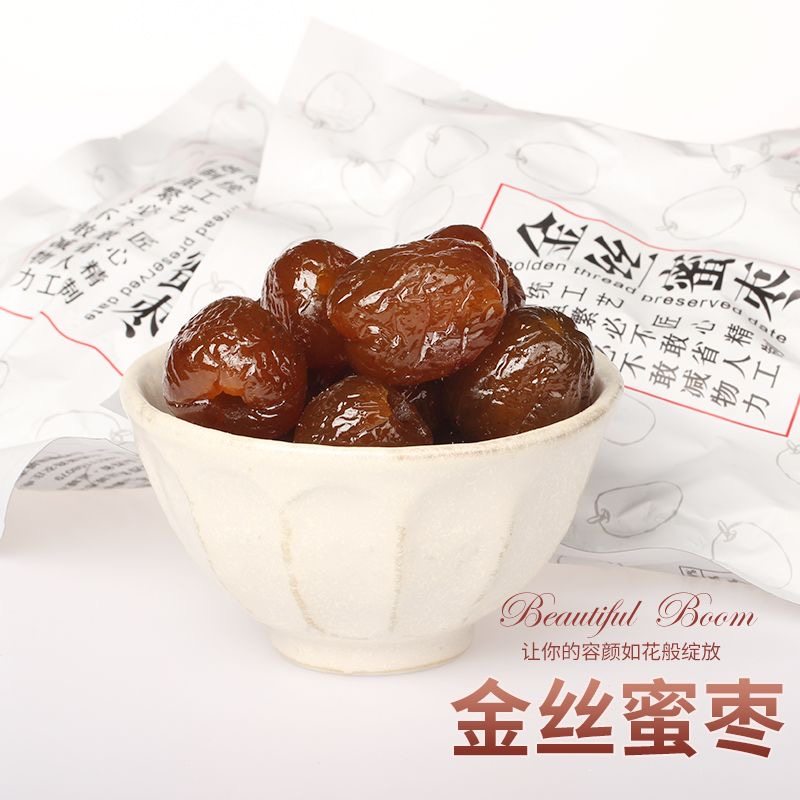 金丝蜜枣精选优质红枣,经传统工艺蜜制而成,色泽金黄透亮,口感软糯香甜,去核无核设计,食用便捷安全。特别适用于制作水晶粽子、煲汤调味,亦可作为商用馅料或散装蜜饯零食直接享用。其质地细腻、甜而不腻,富含天然果糖与维生素,既保留红枣营养,又增添蜜香风味。适合餐饮、烘焙、食品加工及家庭日常食用,是健康美味的天然零食选择。独立包装或大袋散装可选,便于储存与分装,满足多样化需求。金丝蜜枣,传统风味与现代便利的完美结合。