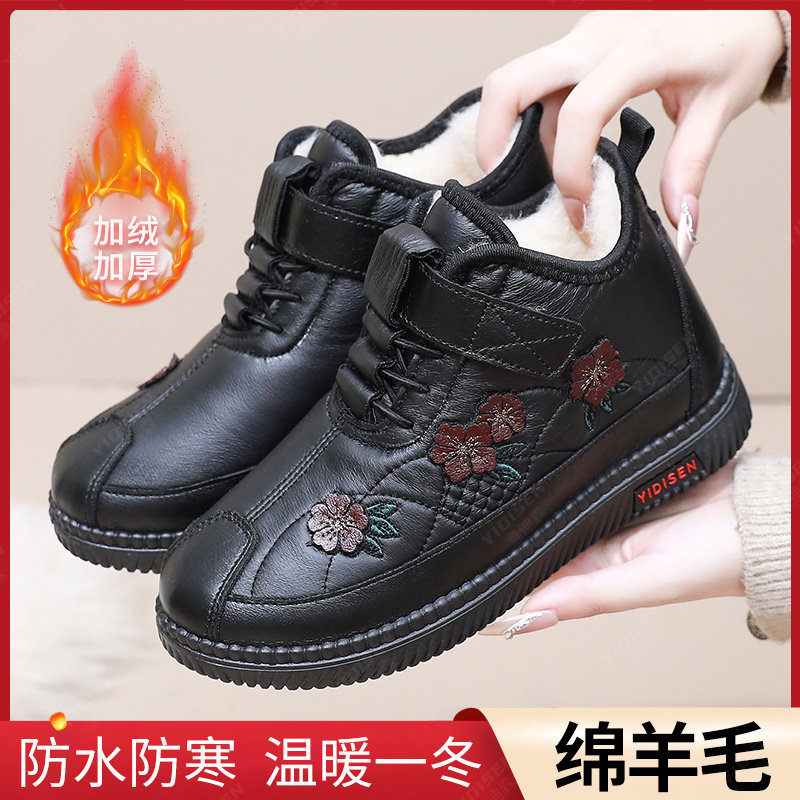 天加绒加厚老人鞋女冬季防滑运动鞋中老年妈妈保暖羊毛棉鞋老年人