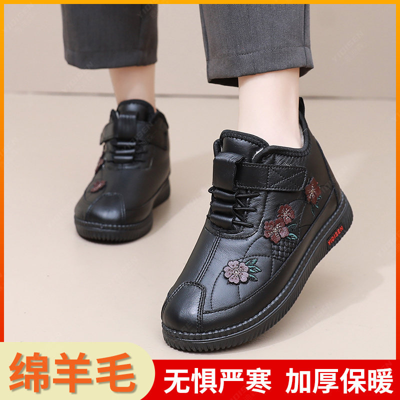 加绒加厚老人鞋女冬季防滑运动鞋中老年妈妈保暖羊毛棉鞋老年人
