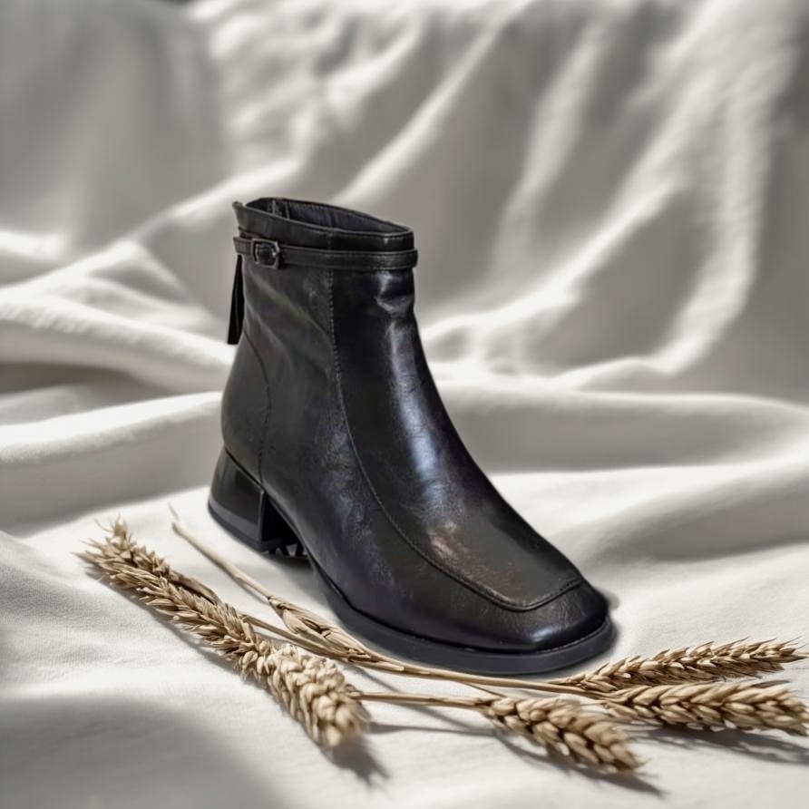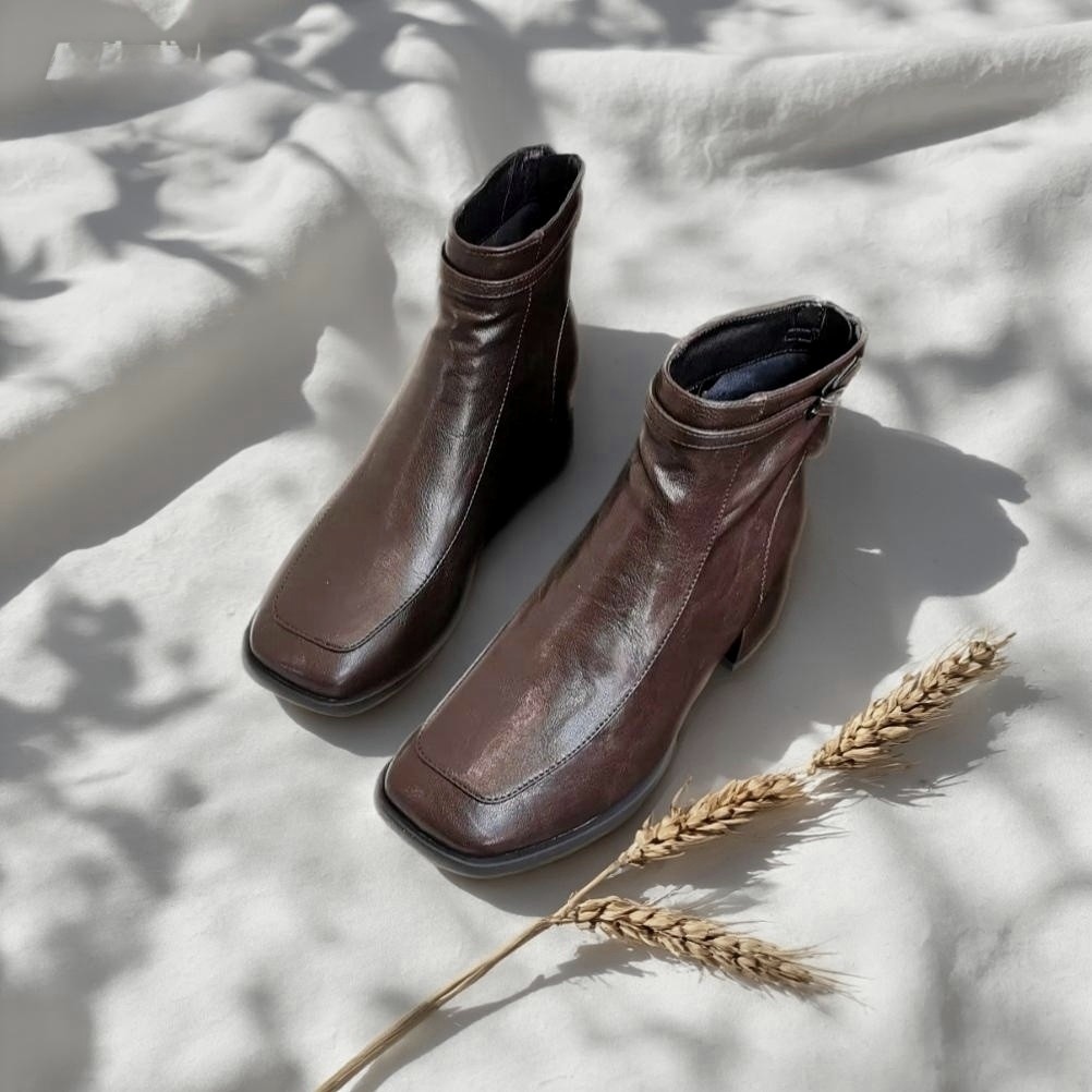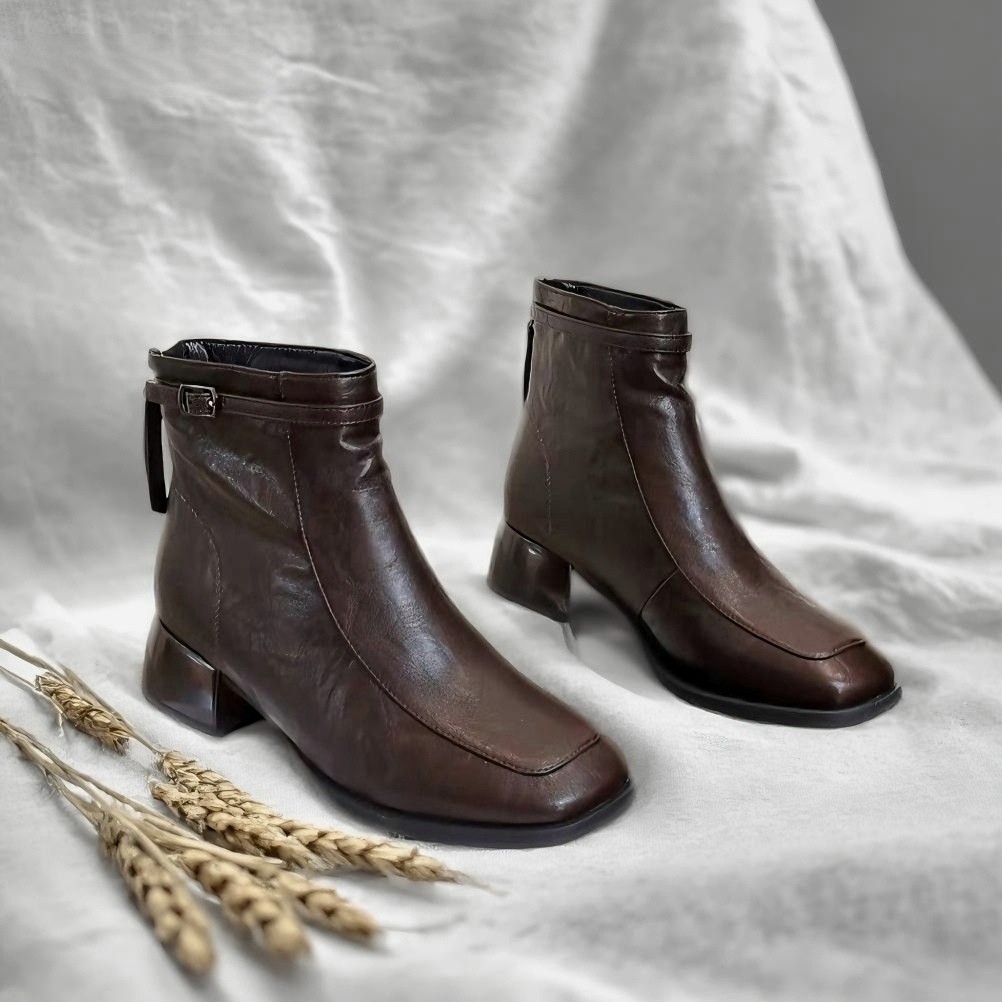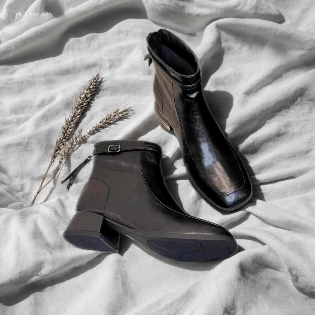 淘宝法式粗跟小短靴女2025冬季新款百搭配裙子后拉链软底软面妈妈鞋