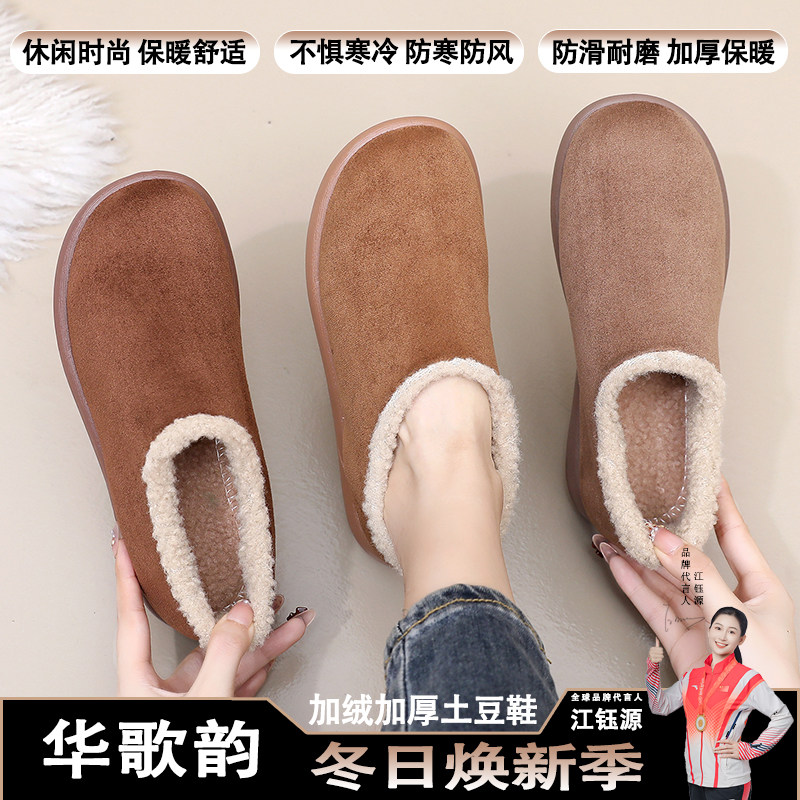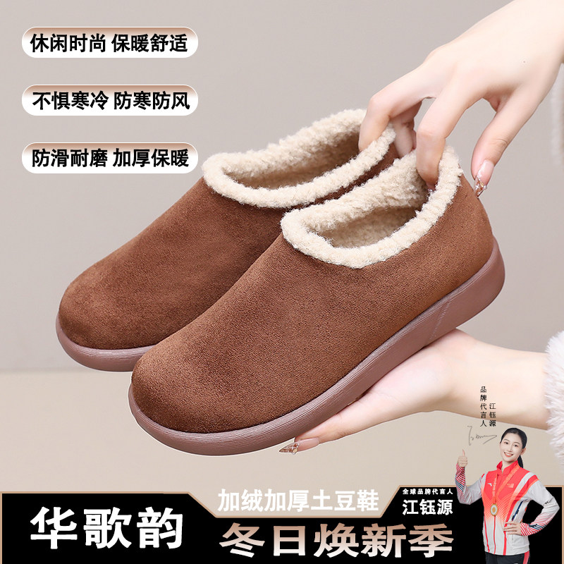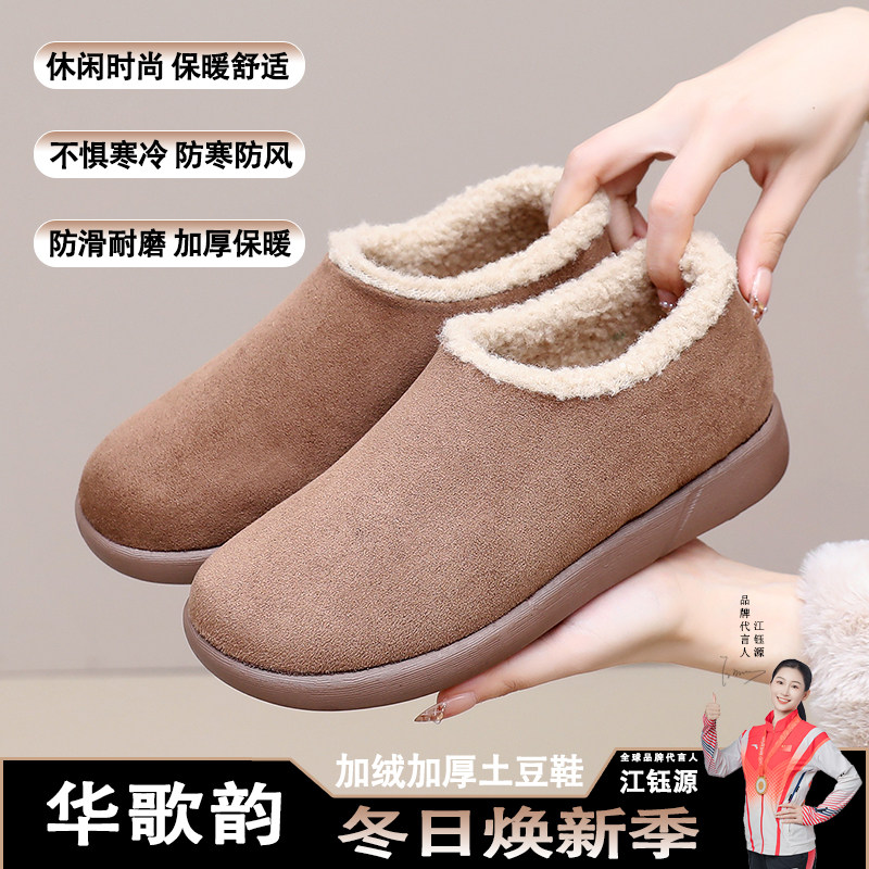 淘宝冬季新款保暖舒适一脚蹬雪地靴加绒加厚防滑耐磨妈妈鞋休闲土豆鞋