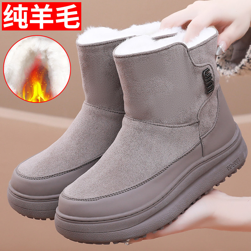 天猫冬羊皮毛一体雪地靴老北京布鞋女棉鞋加绒加厚保暖妈妈鞋厚底增高