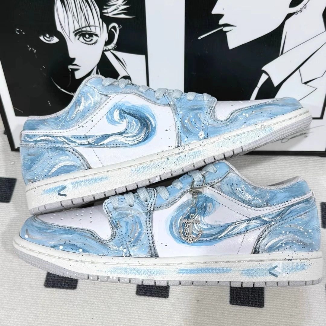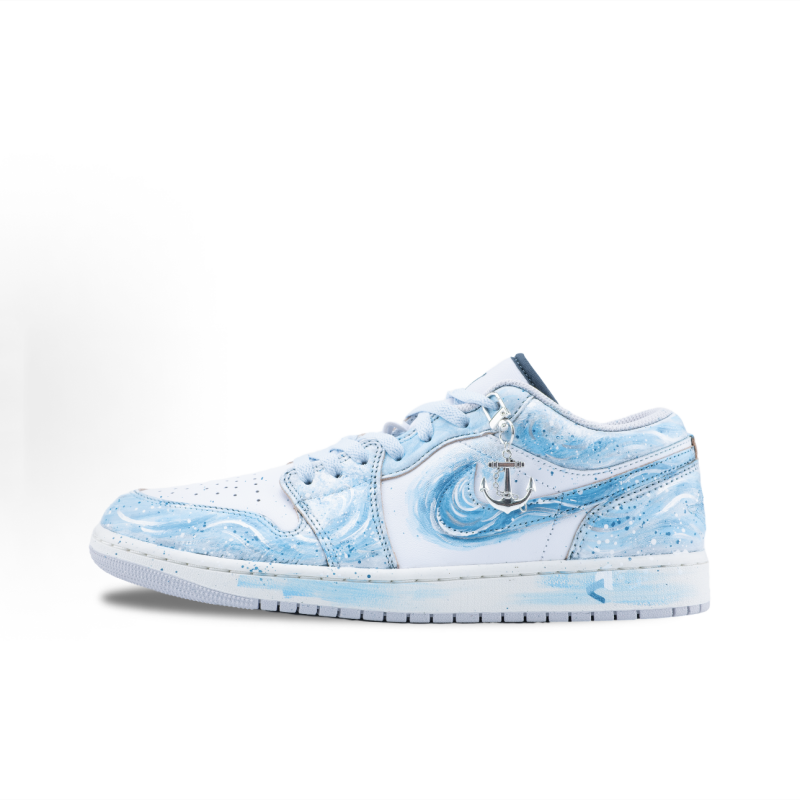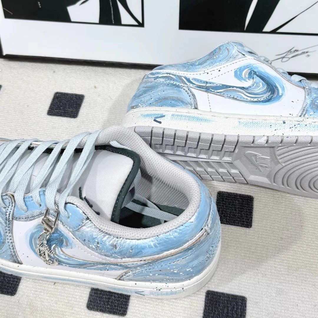 淘宝耐克球鞋定制Nike Air Jordan1海洋之蓝手绘涂鸦低帮篮球鞋