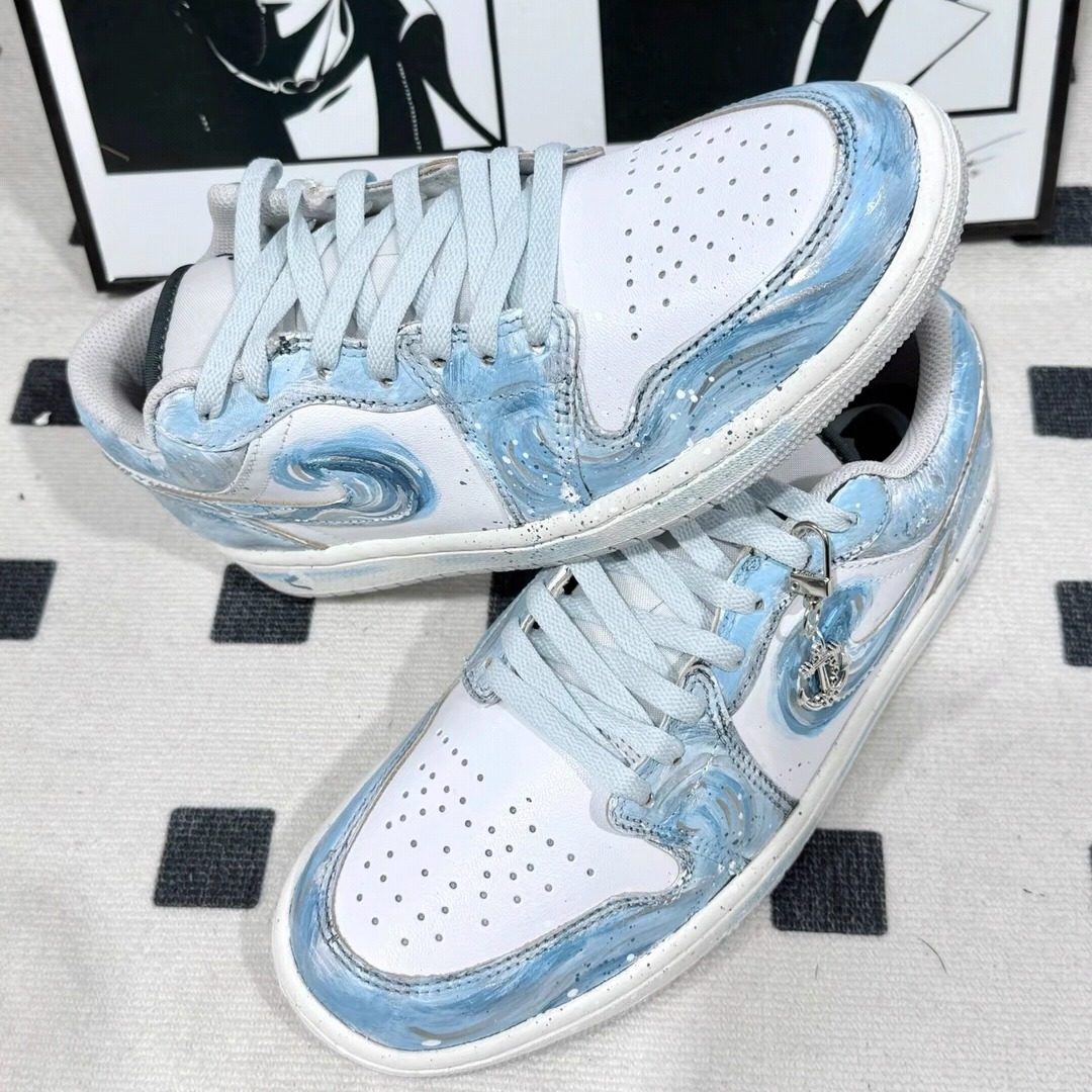 这款Nike Air Jordan 1“海洋之蓝”手绘涂鸦低帮篮球鞋,是经典与创意的完美融合。以标志性的AJ1低帮鞋型为基底,采用优质皮革打造,鞋身以清新深邃的海洋蓝为主调,搭配纯白中底,营造出清爽又高级的视觉质感。鞋面融入独一无二的手绘涂鸦元素,由艺术家精心绘制,图案灵感源自海洋生态,如波浪、珊瑚与游鱼,赋予球鞋强烈的艺术气息与个性表达。每一双均为限量定制,细节精致,兼具收藏价值与穿搭魅力。无论是球场实战还是日常出街,这款定制球鞋都能彰显独特品味,成为潮流焦点。