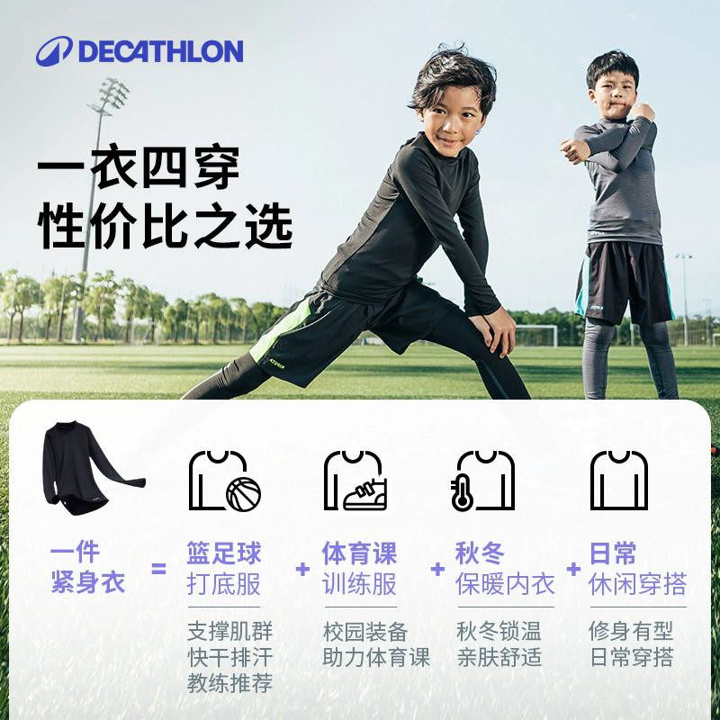 天猫迪卡侬儿童篮球紧身衣运动训练服打底衫男女童速干衣足球KIDO