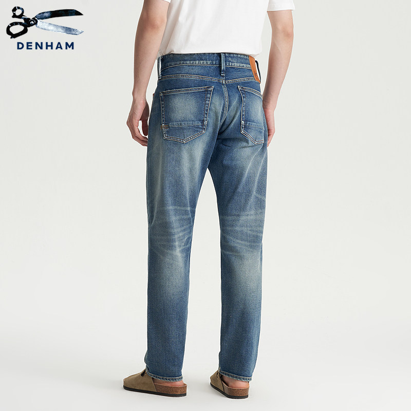 天猫DENHAM秋季蓝耳宽松中腰休闲微锥水洗猫须剪刀牛仔裤男FORGE