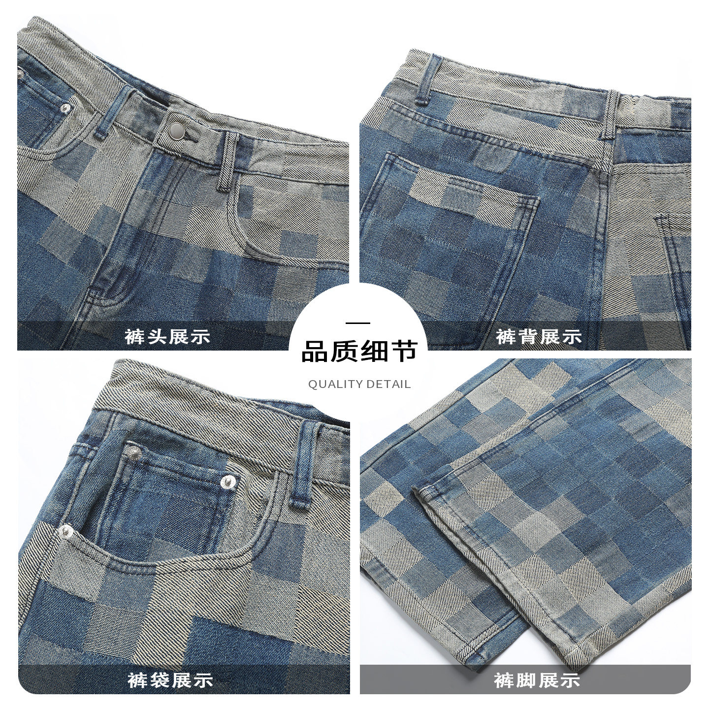 这款5cm/FIVECM男士马赛克格子阔腿牛仔裤,专为2026年春秋季设计,融合复古格纹与现代宽松剪裁。采用高弹力优质棉质面料,舒适透气,活动自如。直筒阔腿版型修饰腿型,视觉拉长比例,适合多种身材。经典五袋设计搭配精致金属五金,细节考究。低饱和度马赛克格纹低调又不失个性,轻松驾驭街头、休闲等多种风格。无论是搭配卫衣、衬衫还是针织衫,都能展现随性时髦的穿搭态度。是追求舒适与潮流兼具的男士衣橱必备单品。