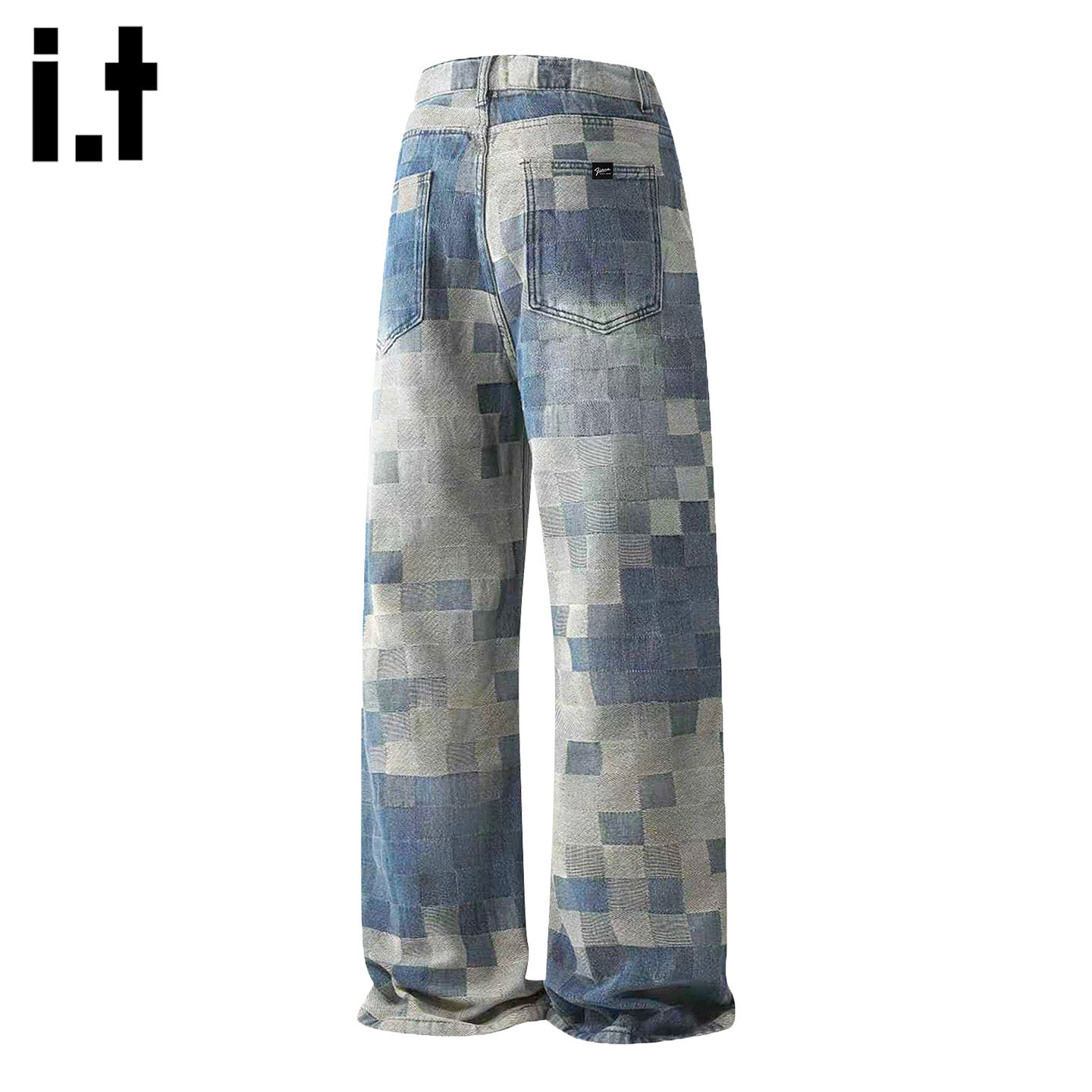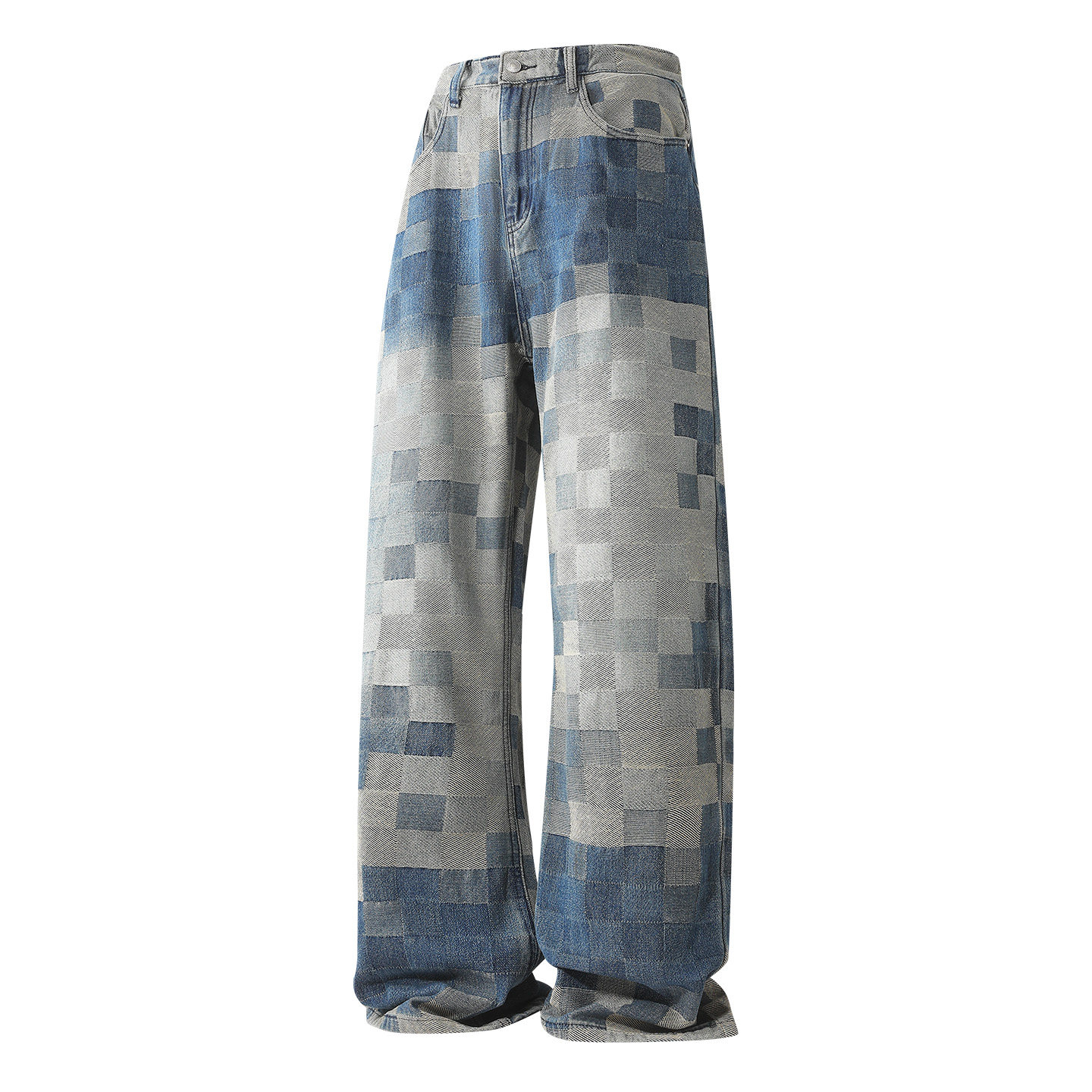 淘宝it :5cm/FIVECM马赛克格子阔腿牛仔裤男士2026春秋季宽松直筒长裤