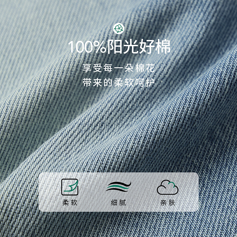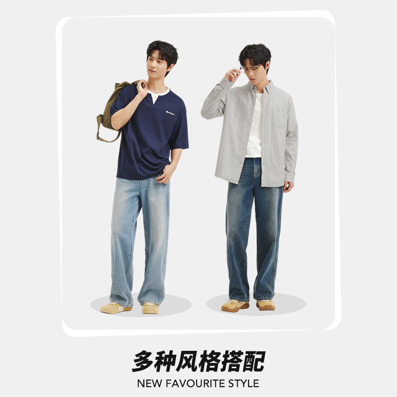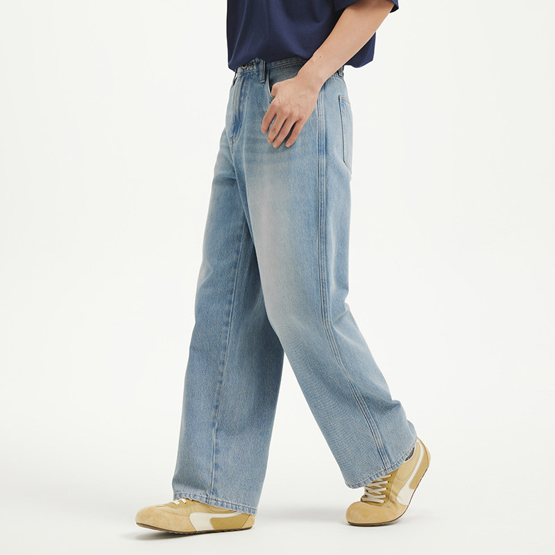 淘春秋季美式休闲痞帅复古怀旧浅蓝色牛仔裤男直筒宽松百搭阔腿裤子