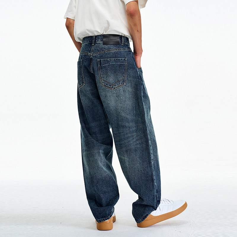 天豪霆.美式复古宽松直筒牛仔裤男士春秋季潮流cleanfi休闲阔腿长裤