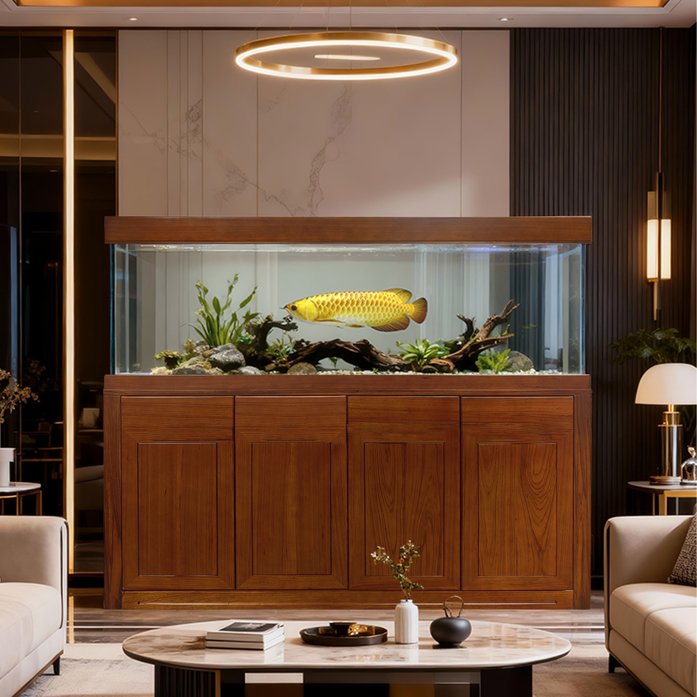 淘宝名匠中式定制家用办公室屏风实木鱼缸底柜金晶超白玻璃生态龙鱼缸