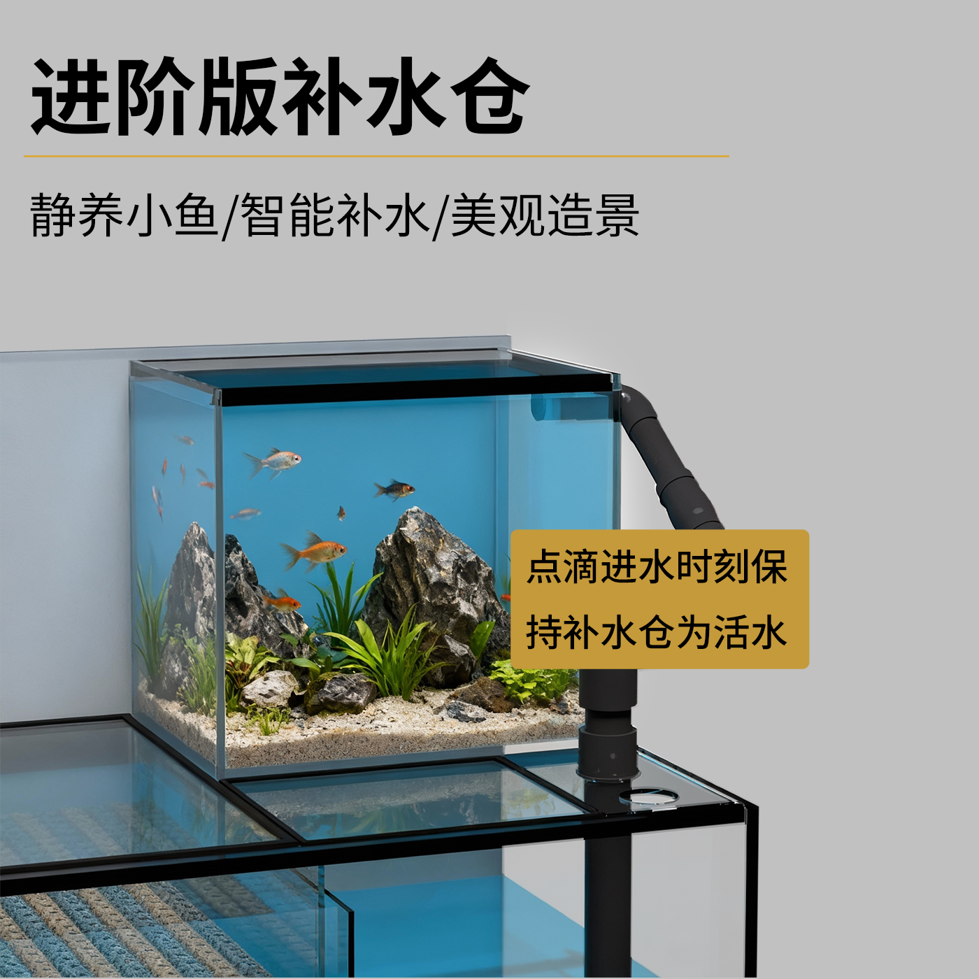 赫希二代家用鱼缸超白底滤铝合金柜极窄溢流水切溪流缸客厅免换水